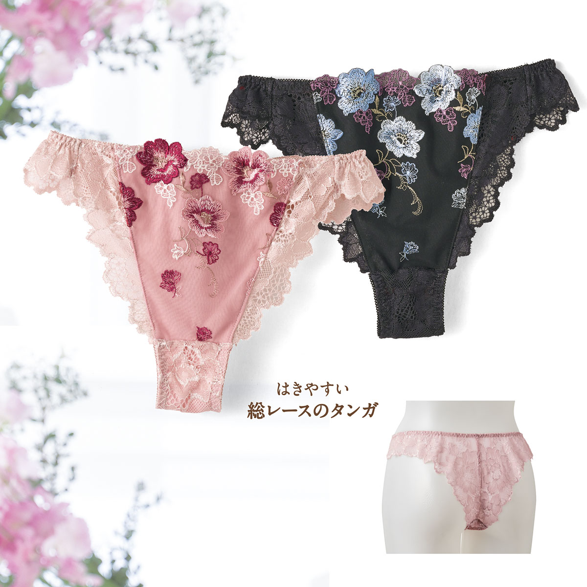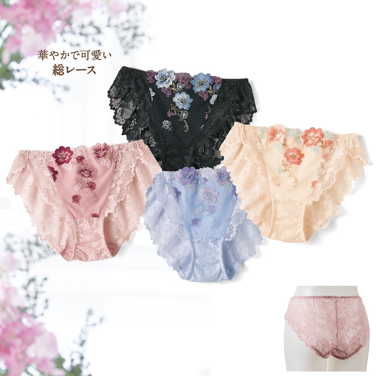 花刺しゅうやレースをふんだんに、大人がときめく可愛さをちりばめた【華やぎをまとう刺繍レースショーツ】\お客様の声から、好きな色・デザインを選べる1枚売りになりました/