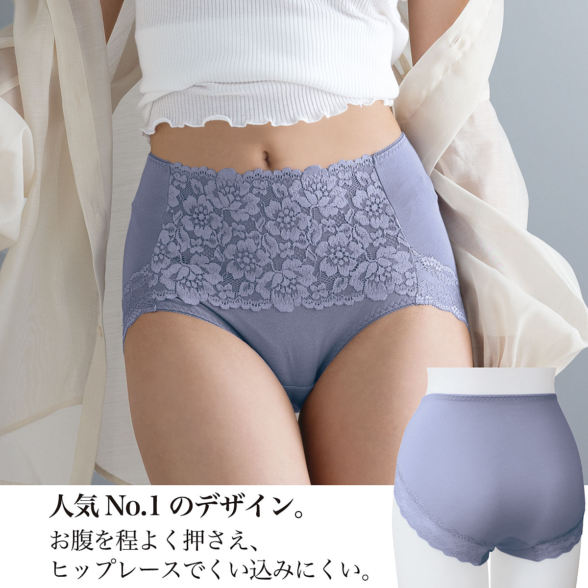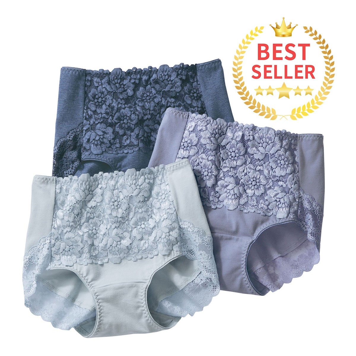 【累計販売枚数468万枚突破!(2025年8月末現在)】綿95%のやさしい肌ざわりで、ヒップにほどよくフィット。レースたっぷり、エレガントなスタンダードショーツをデイリー使いにうれしい色違い3枚組で