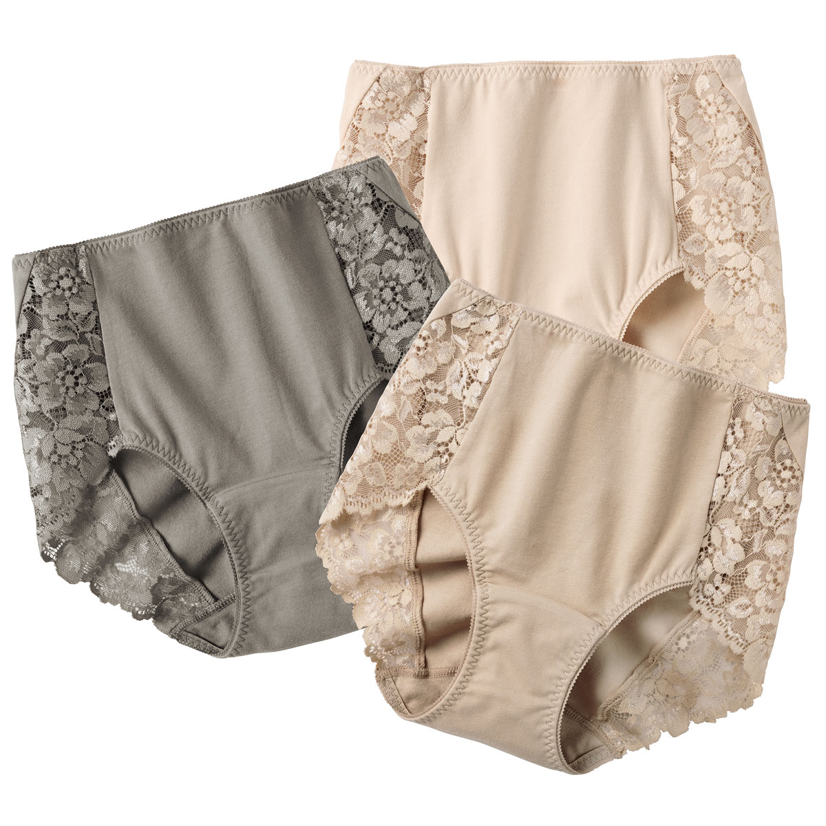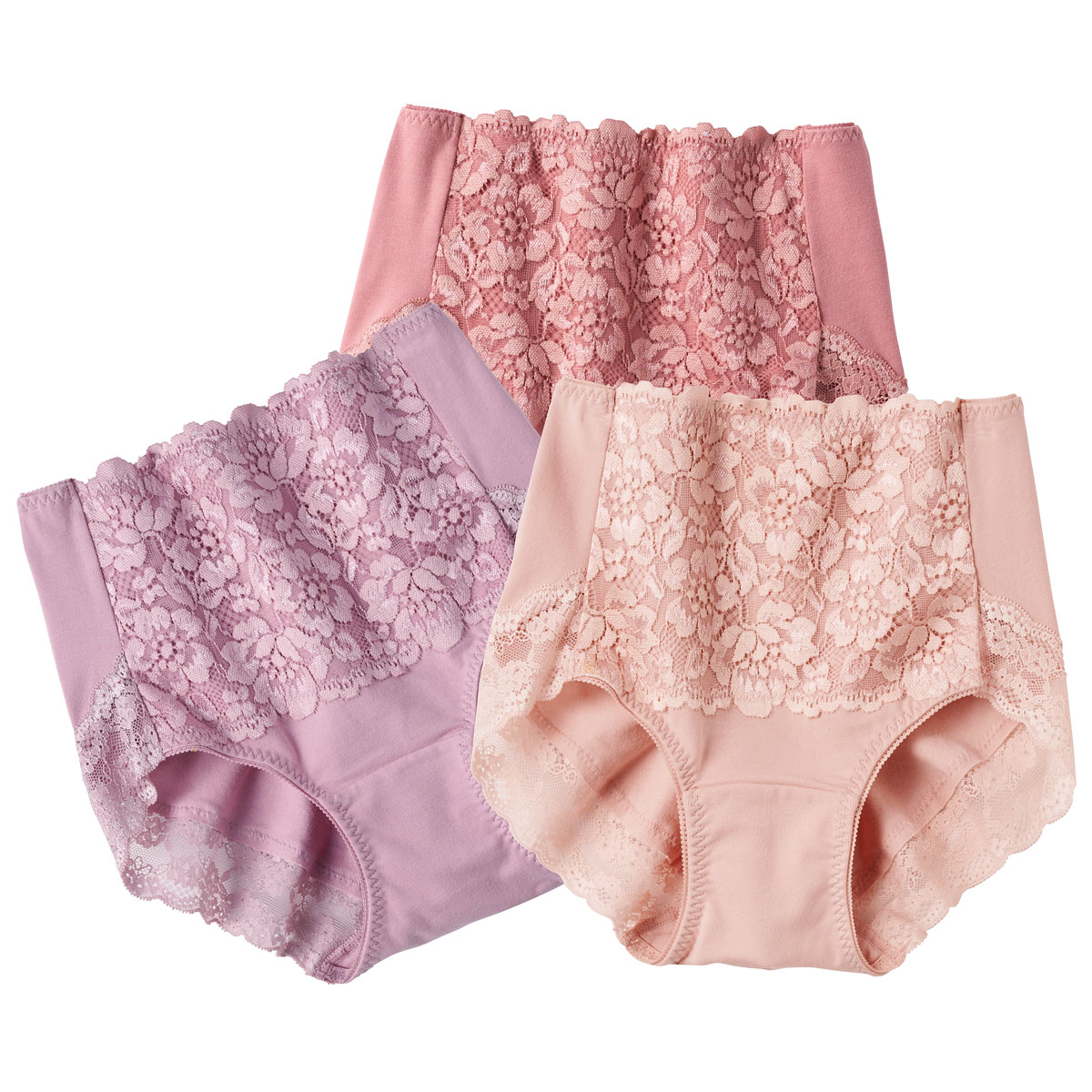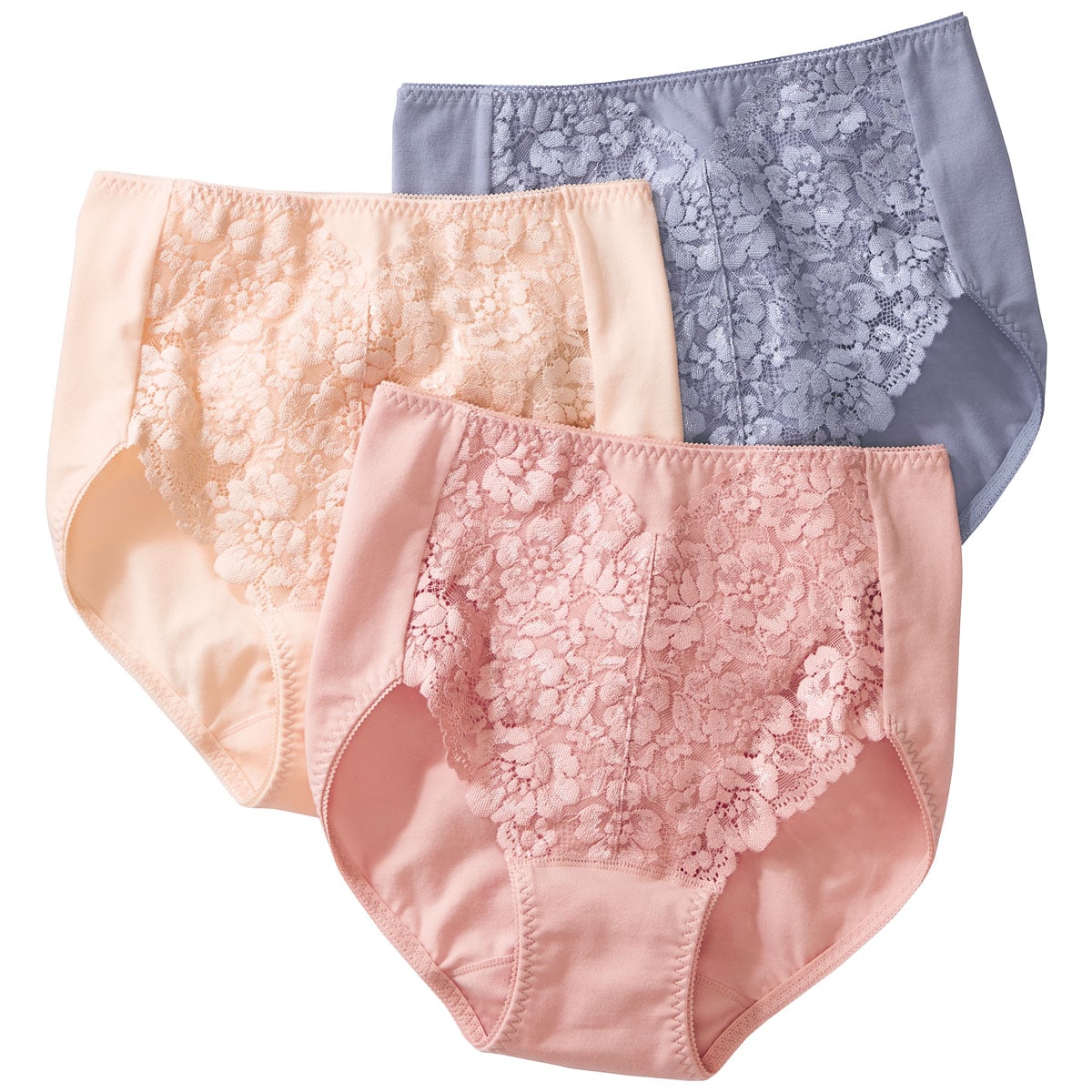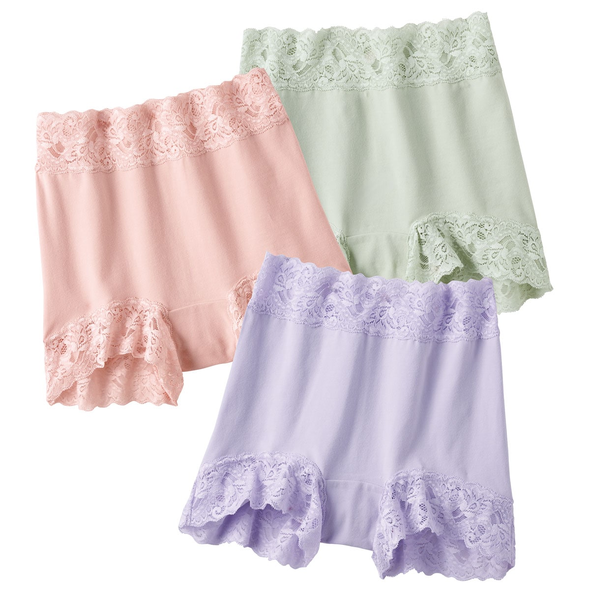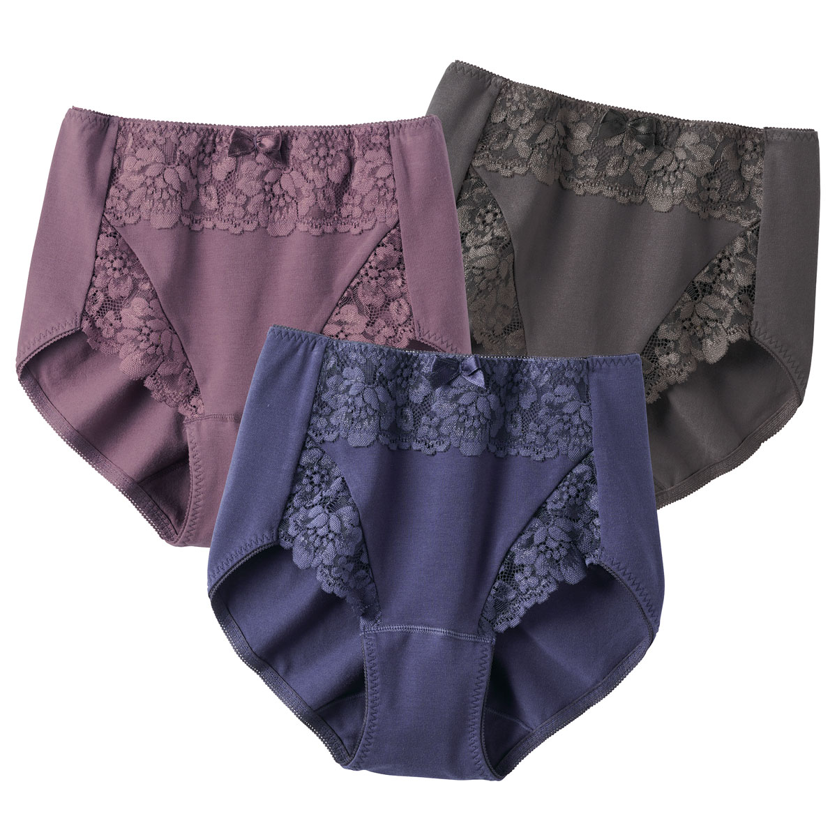 色違い3枚組・綿混レーシィショーツ(ストレッチ)(はきこみ丈スタンダード)