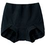 (1)フロントは生地2重、下腹は3重仕立て(2)レース・ゴムもなく不快なくい込みも軽減(3)お腹もヒップもすっぽり包み込む(4)フィット感の高いハイパワー天竺。肌にやさしい綿80%