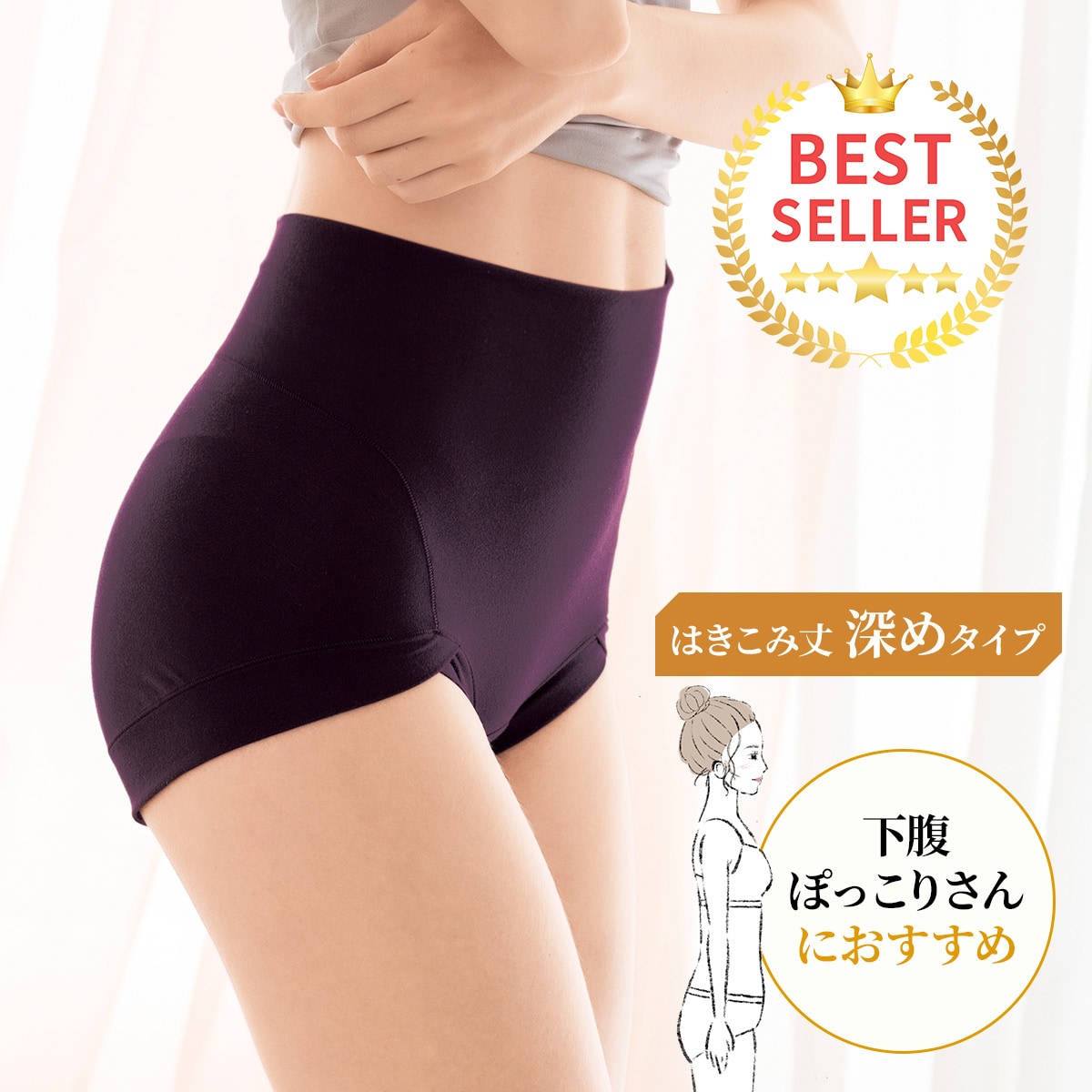 【シリーズ累計販売枚数17.5万枚突破!(2025年8月末現在)】大人の「ぽっこりお腹」がすっきり!上品な風合いの綿混ストレッチですっぽり包み込むはきこみ深めショーツ。快適に下腹すっきり、くい込みも軽減