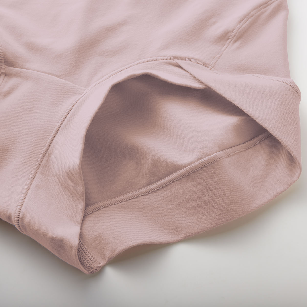 レース・ゴム不使用、ウエスト・足口は生地の折り返しで、ゴムのくい込みやレースかぶれの心配なし。縫い代もゴロつきにくい