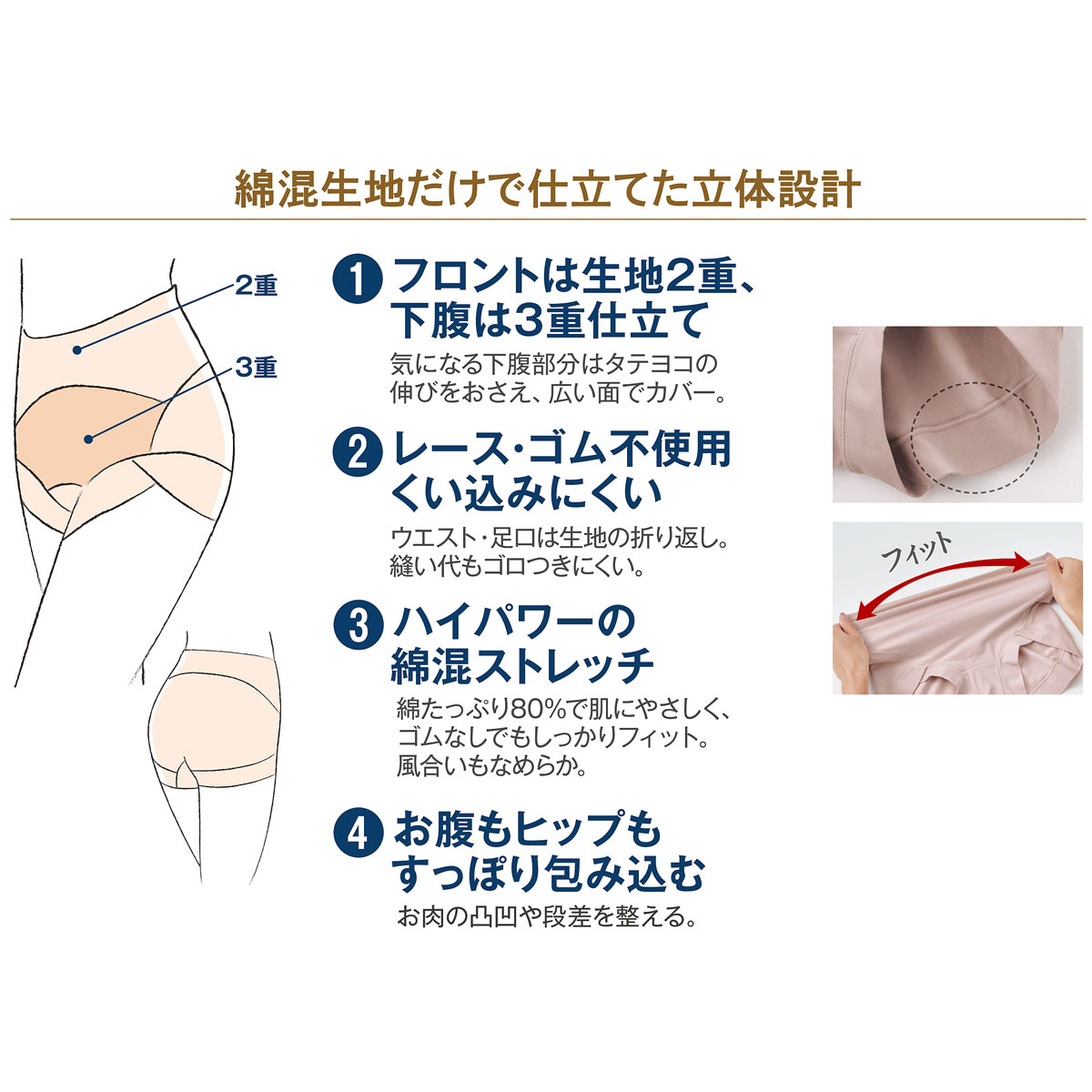 綿混素材だけの下腹3重仕様