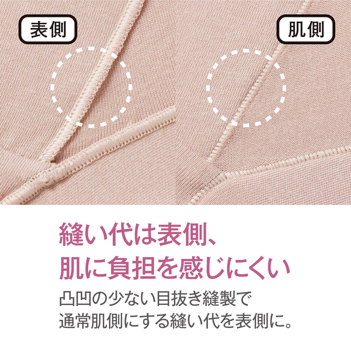 縫い目のストレス軽減。縫い代は表側に。縫い代は表側に。肌に当たりにくいよう工夫。