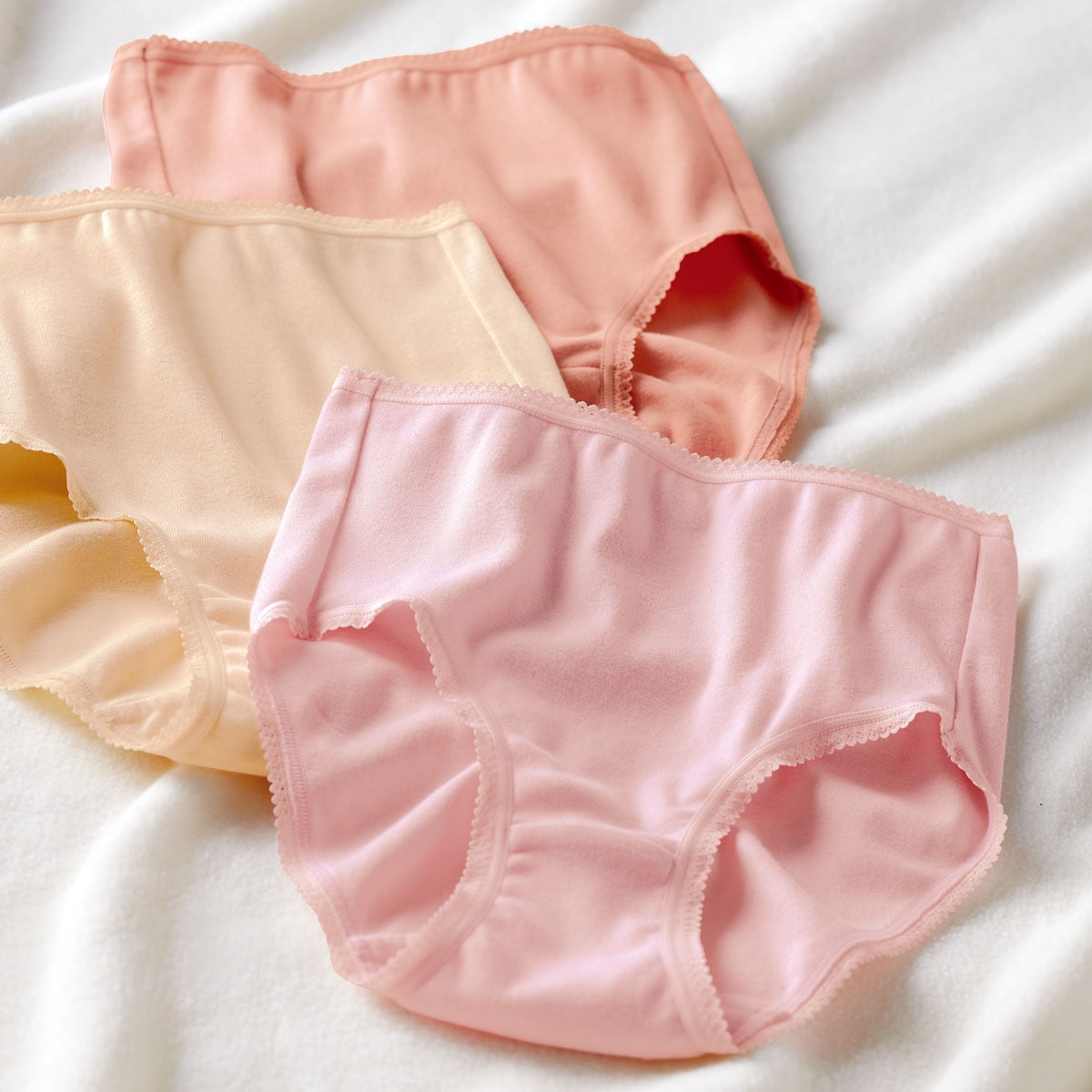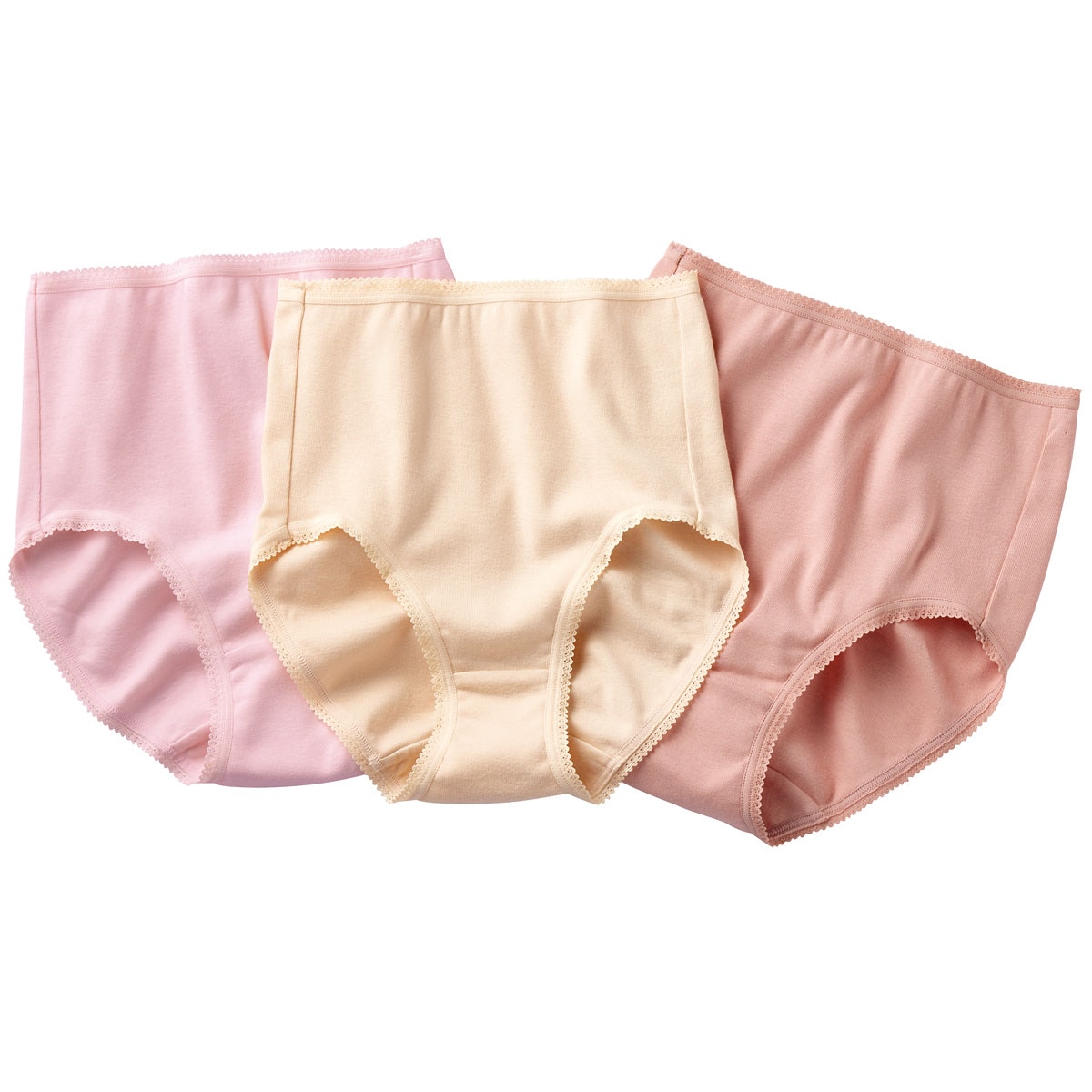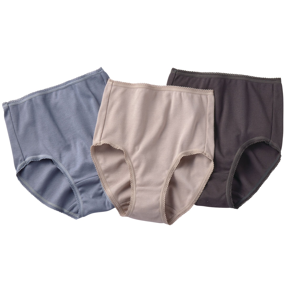 安心深ばきショーツ・色違い3枚組(綿100%)(お腹・足口締めつけにくいやわらかゴム)(はきこみ丈深め)