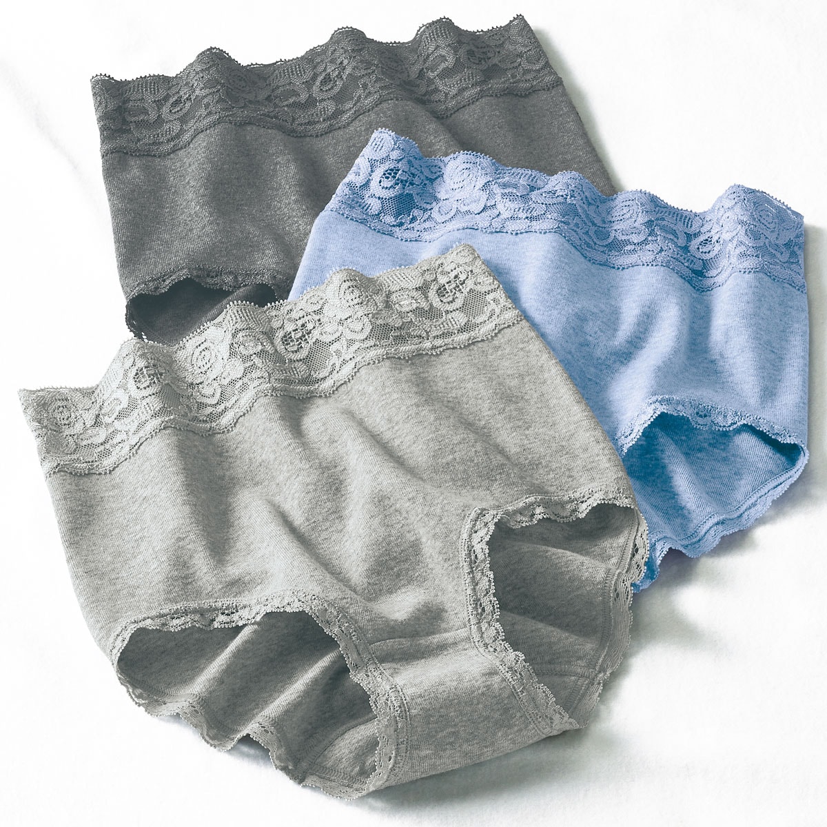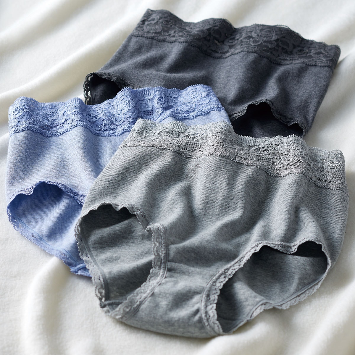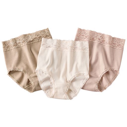 安心深ばき綿100%ショーツ・色違い3枚組(やわらかレース・はきこみ丈深め)