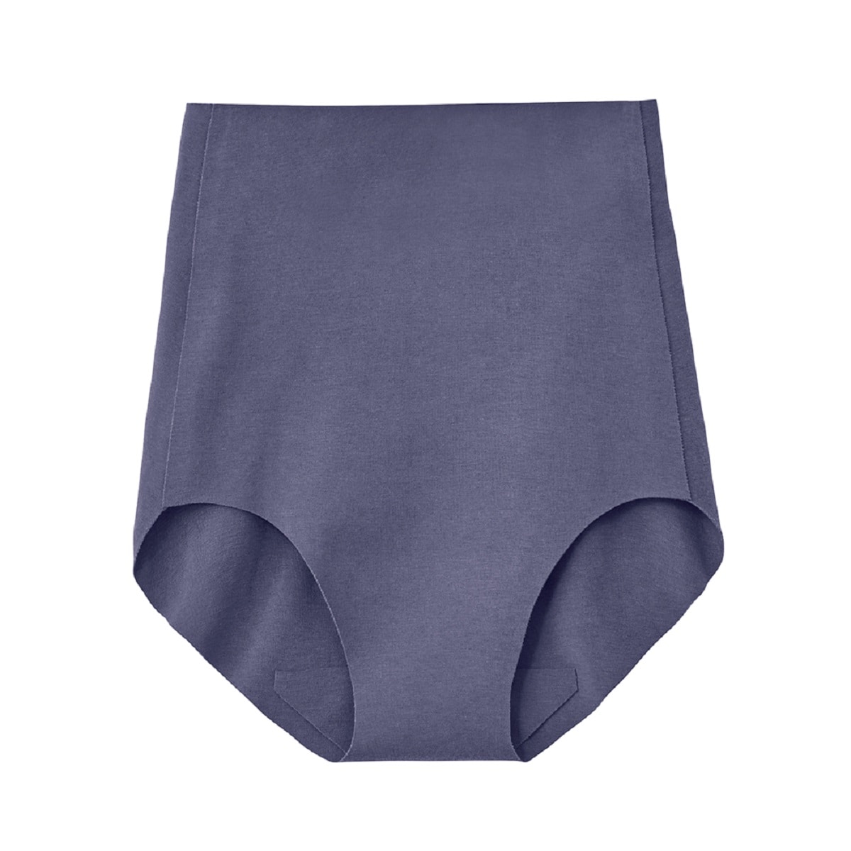 バック (2)肌にやさしい綿混ストレッチ素材 フィット感高めでゴムなしでも快適フィット。保湿加工(スキンタッチ加工)で乾燥対策にも◎(3)下着のラインがひびきにくい カットオフ(きりっぱなし)仕様で、足口はくい込みにくく、ウエストは締めつけにくい※画像の色はベージュBです