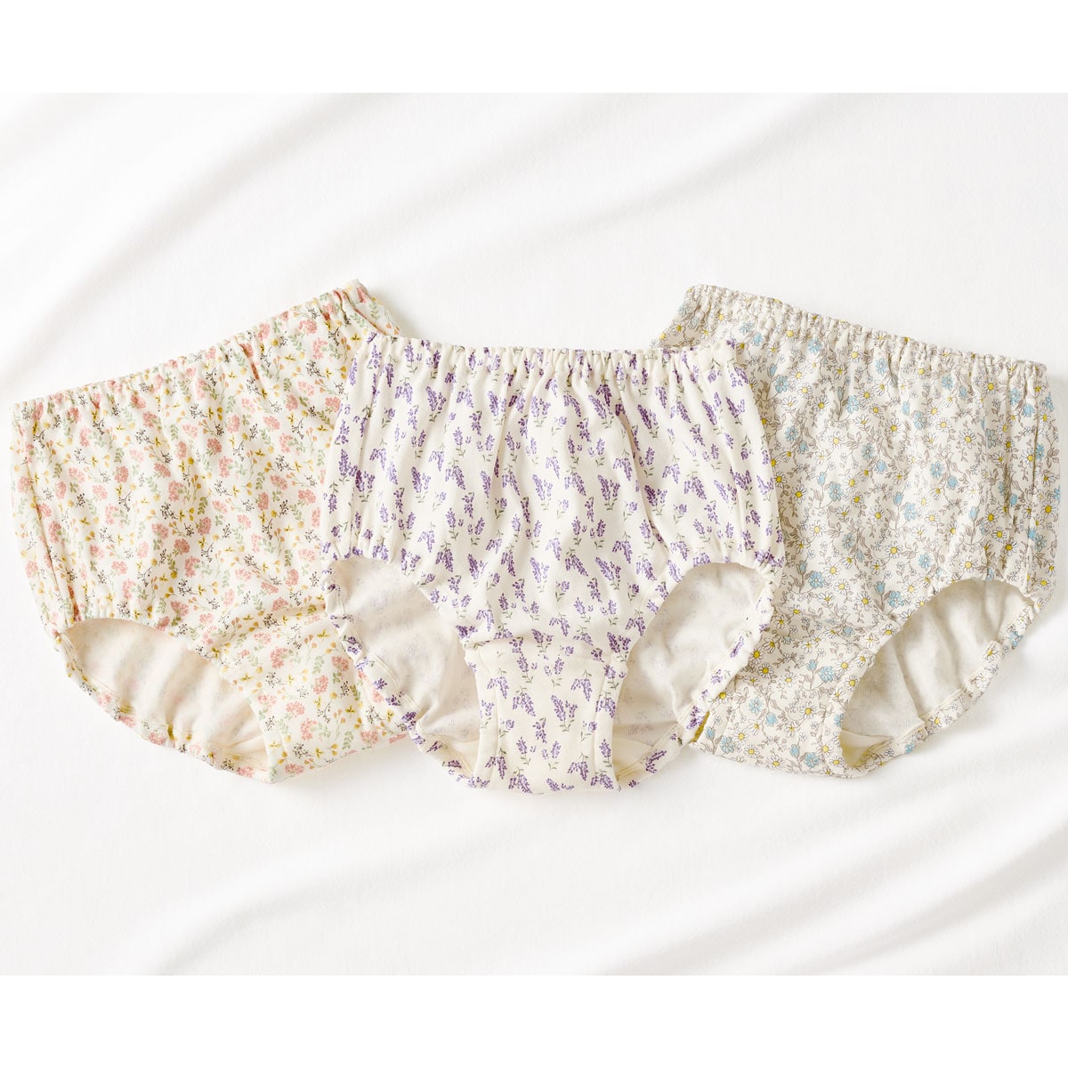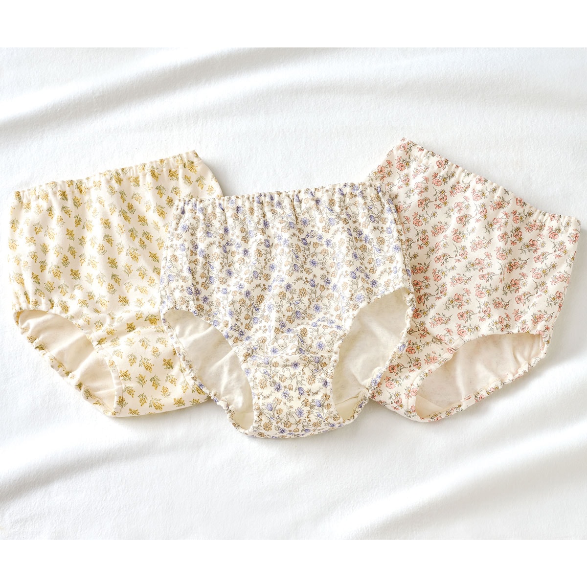 綿100%プリントショーツ・色柄違い3枚組(はきこみ丈深め)