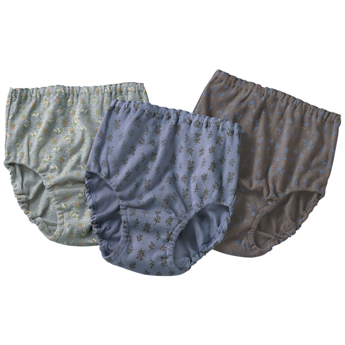 ■身生地=綿100%(フライス)●ウエストゴム取替OK(着用時左脇後ろ)▼商品によって柄の位置は異なります▼洗濯表示タグ付き。製品完成後に縫い付け●マチ裏は綿素材●中国製【綿100%】(身生地)【ウエストゴム取替OK】【フィット指数】★☆☆☆☆(もっとゆったり)【色柄違い3枚組】【大きいサイズも展開】(M~5L)