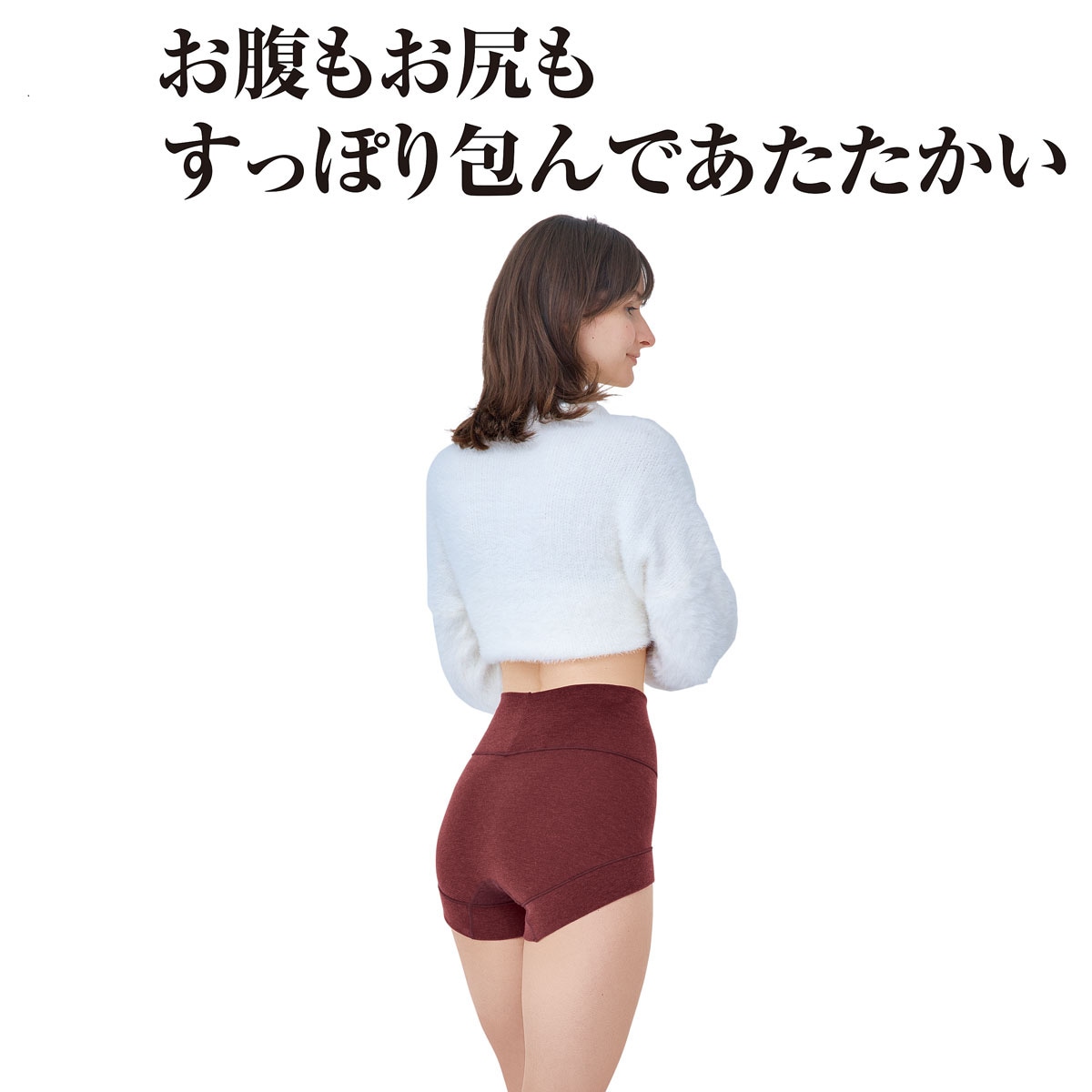 吸湿発熱素材ですっぽり包み込んで、お腹も腰まわりもポカポカあたたかい。やさしい肌あたりで快適にはける、あったか深履きショーツ。