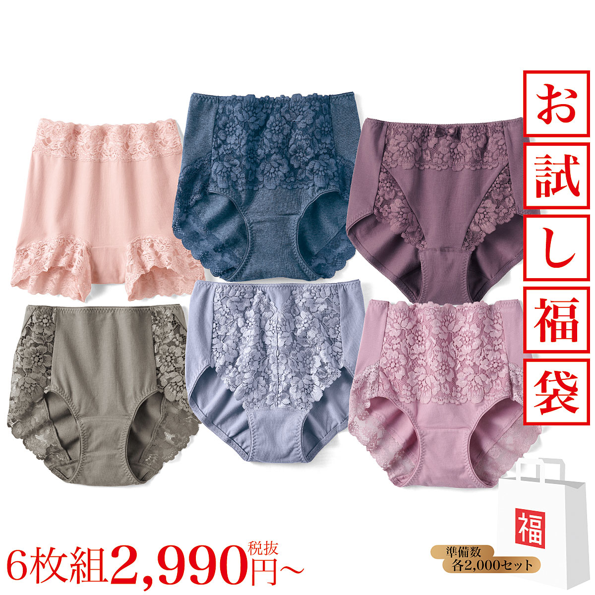 【お試し福袋】デザイン違い6枚組・綿混レーシィショーツ(ストレッチ)(はきこみ丈スタンダード)