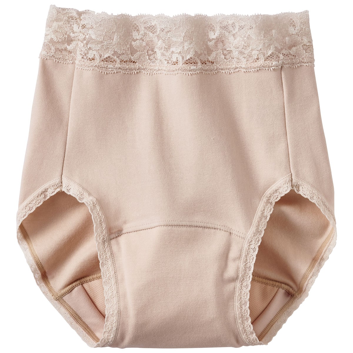 ちょっとした尿モレにも安心の吸水ケアパンツ。水分をすばやく吸収してドライに保つ拡散層と吸水・保水層、モレをガードする防水層の3層構造でしっかりと横モレ防止。身生地は肌ざわりのよい綿混ストレッチ素材で快適なフィット感です。お腹にくい込みにくい幅広ウエストレース仕様。マチ部は薄めでゴワつきにくいので、尿漏れケアインナーを気軽に始めてみたい方にもおすすめ。吸水布は抗菌防臭加工済み。大きいサイズ(~5L)もあります。(日本製)