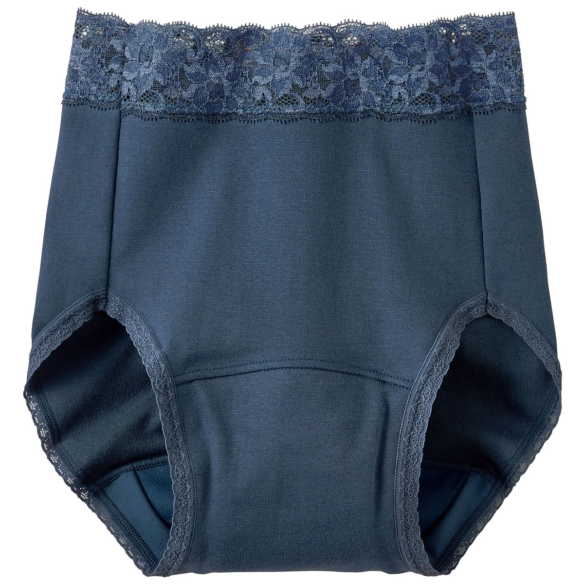 ちょっとした尿モレにも安心の吸水ケアパンツ。水分をすばやく吸収してドライに保つ拡散層と吸水・保水層、モレをガードする防水層の3層構造でしっかりと横モレ防止。身生地は肌ざわりのよい綿混ストレッチ素材で快適なフィット感です。お腹にくい込みにくい幅広ウエストレース仕様。マチ部は薄めでゴワつきにくいので、尿漏れケアインナーを気軽に始めてみたい方にもおすすめ。吸水布は抗菌防臭加工済み。大きいサイズ(~5L)もあります。(日本製)