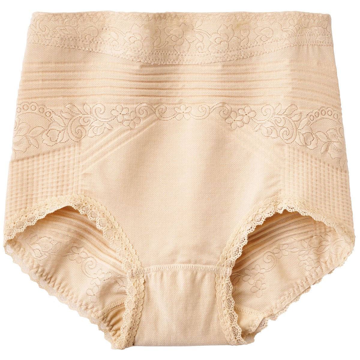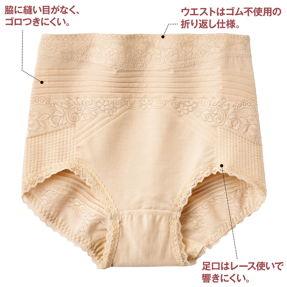 ■身生地=ナイロン54%綿26%ポリウレタン20%(レース編み生地)足口レース=ナイロン・ポリウレタン(ストレッチレース)●マチ裏は綿素材●日本製【フィット指数】★★★★☆(もっとぴったり)【バックギャザー】※効果は着用時の物理的サポートによるものです。