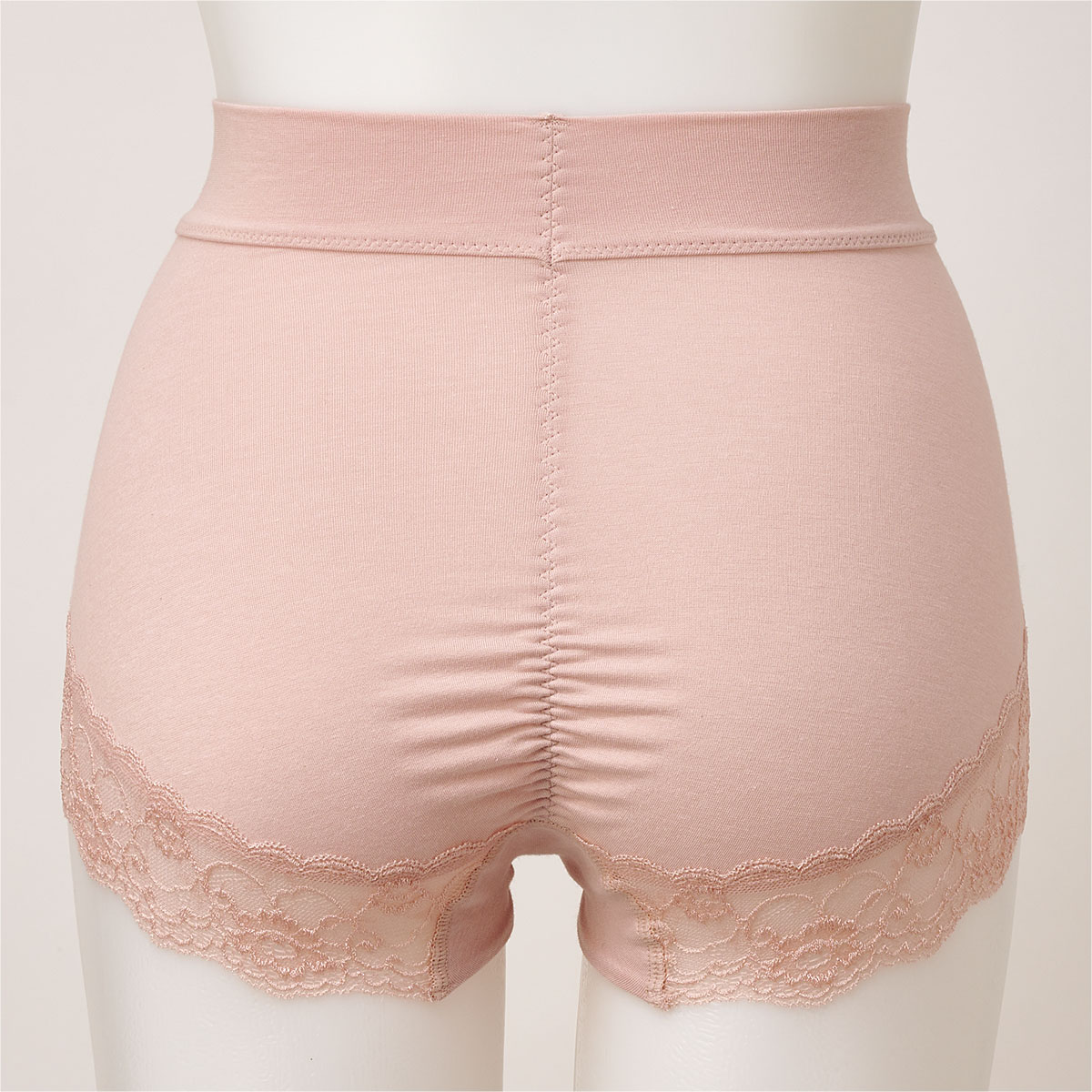 ■身生地=綿50%ポリエステル40%ポリウレタン10%(ストレッチ天竺)レース=ナイロン・ポリウレタン(ストレッチレース)●マチ裏は綿混素材●ベトナム製(レース:日本製)【綿混ストレッチ】(身生地)【バックギャザー】【フィット指数】★★★☆☆(ぴったり)【大きいサイズも展開】(M~3L)【吸汗】【速乾】