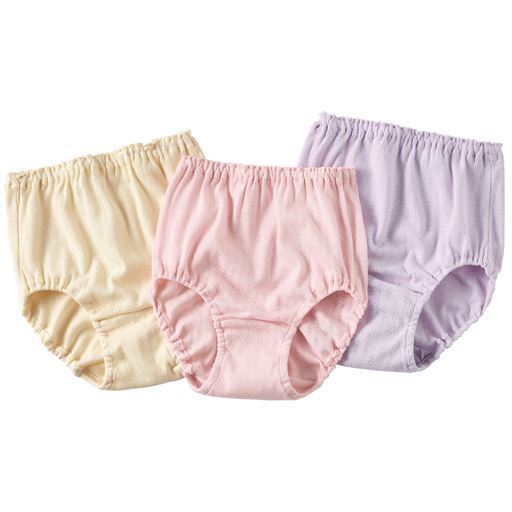 安心深ばきショーツ・色違い3枚組(綿100%・はきこみ丈深め・くるみゴム・ふんわりメッシュ)