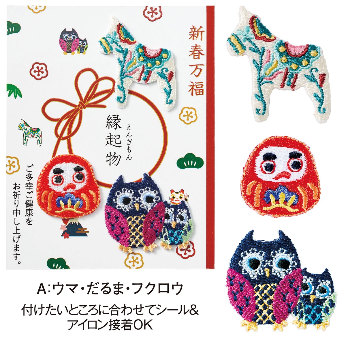 新年の幸せを呼ぶ刺繍アップリケアイロン接着はもちろん、シールとしても貼り付けOK
