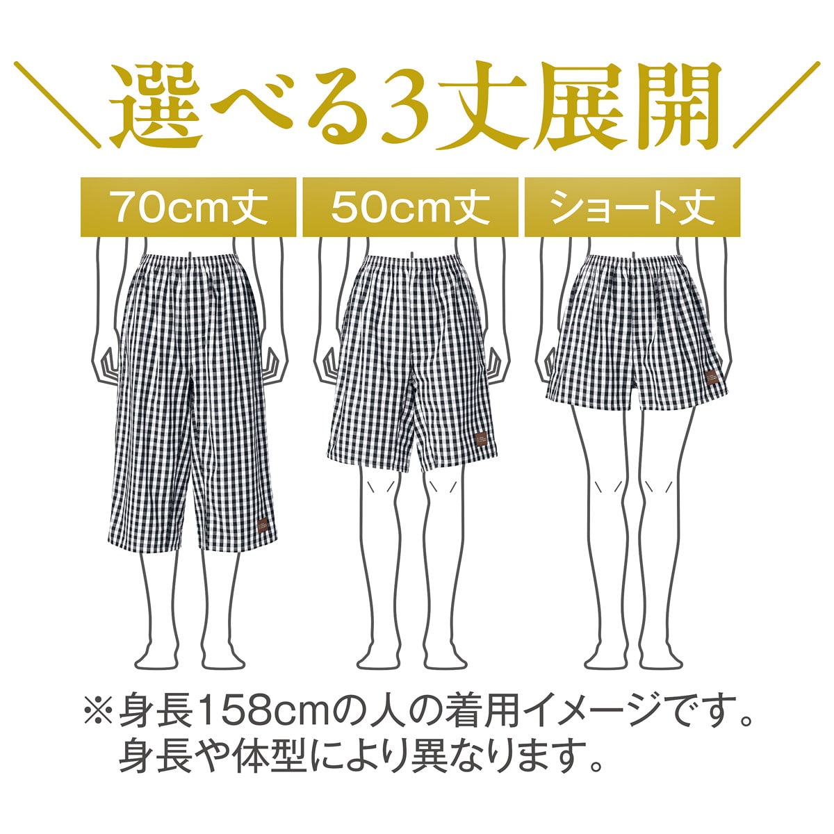 メンズトランクス発想!丈が選べる!女性もはけるトランクス。足まわりの締め付けにくさはもちろん、やわらかいウエストゴムで快適。