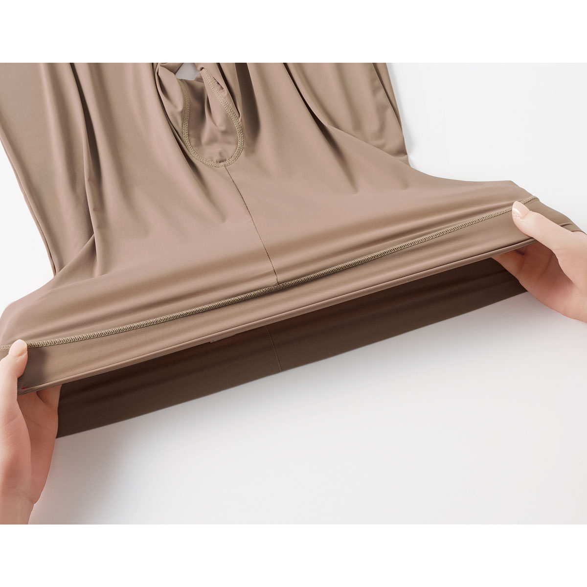 接触冷感でひんやり。触れるたびにひんやり涼しい。すべりの良いなめらかなストレッチスムース素材です。