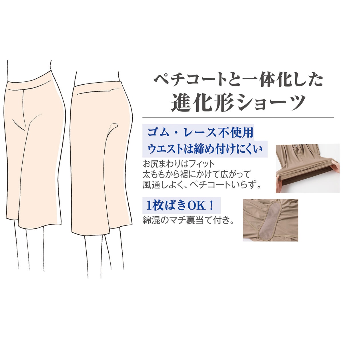 ペチコートと一体化した進化形ショーツ。1枚ばきOK!綿混のマチ裏当て付き。