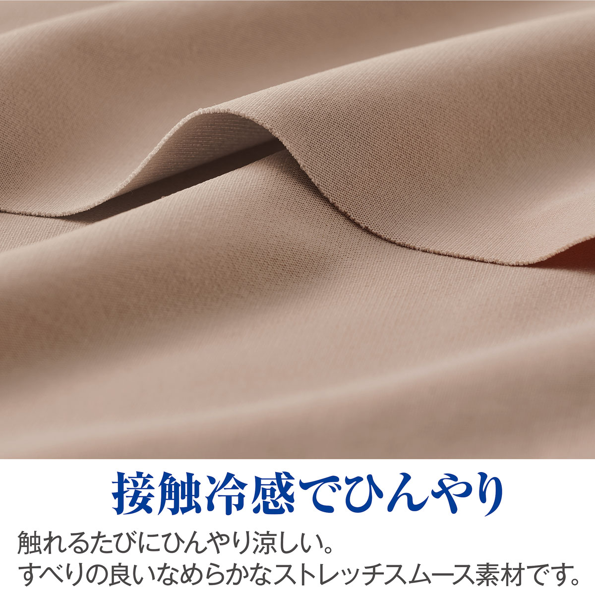 接触冷感でひんやり 触れるたびにひんやり涼しい。すべりの良いなめらかなストレッチスムース素材です。