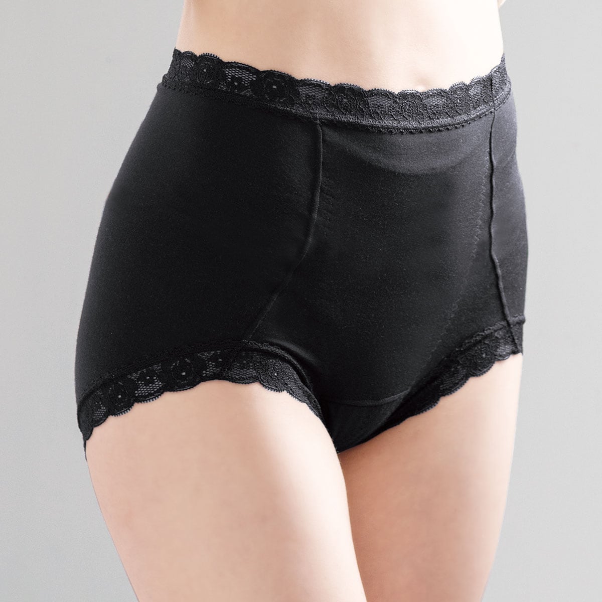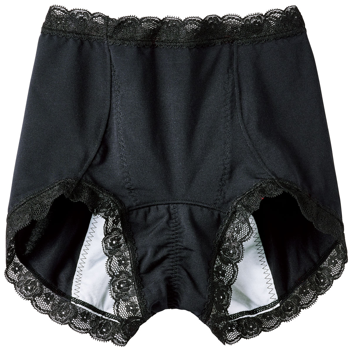 ■身生地=ナイロン45%綿40%ポリウレタン15%(ストレッチ天竺)レース=ナイロン・ポリウレタン(ストレッチレース)●防水布は消臭加工(アンモニア臭)●ベトナム製【綿混ストレッチ】(身生地)【多い日用】(長時間タイプ)【羽根付きナプキン対応】【フィット指数】★★★☆☆(ぴったり)【大きいサイズも展開】(M~5L)