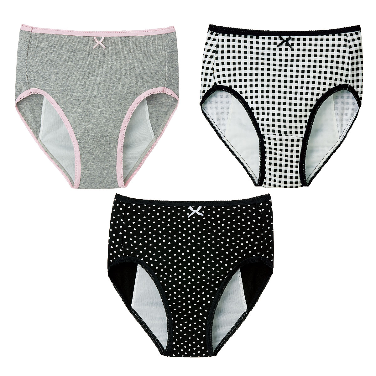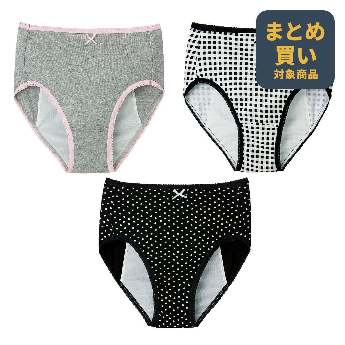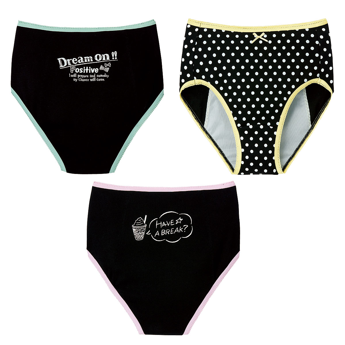 サニタリーショーツ(3枚組)(色柄たくさん)(綿100%/身生地)(普通~多い日、多い日~夜用)