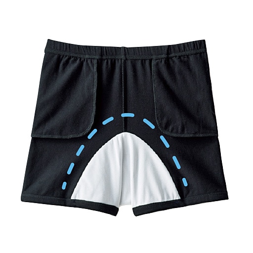 お客様の声から、微調整を重ね、おしりをすっぽり包み込むようにリニューアル!多い日や夜は不安という方におすすめの防水布付きオーバースパッツ。昼用は長めの防水布付き、夜用は後ろの腰位置までカバーする防水布付きでしっかりモレ広がりをカバーします。左右にナプキンが入るポケット付きで、いつでもトイレに行けるのがうれしい。旅行のときに、体育のときに、部活のときにと何かと不安な時に安心の一枚です。こちらの商品は品番:ET-915のリニューアル商品です。