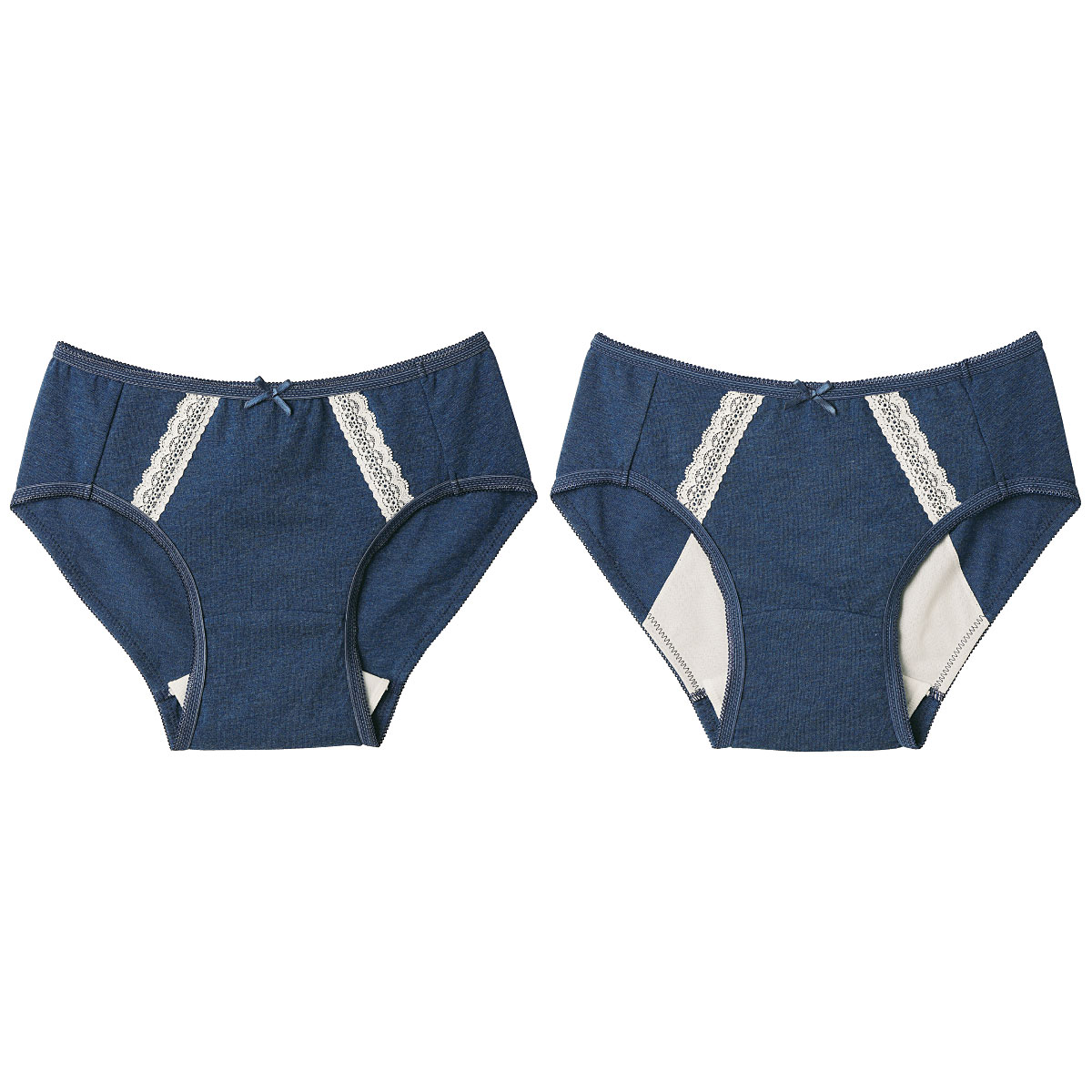 ■身生地=綿95%ポリウレタン5%レース部分(A・J)=ナイロン・ポリウレタン●羽付きナプキン対応●中国製【綿混】 【羽付きナプキン対応】 【2枚組】