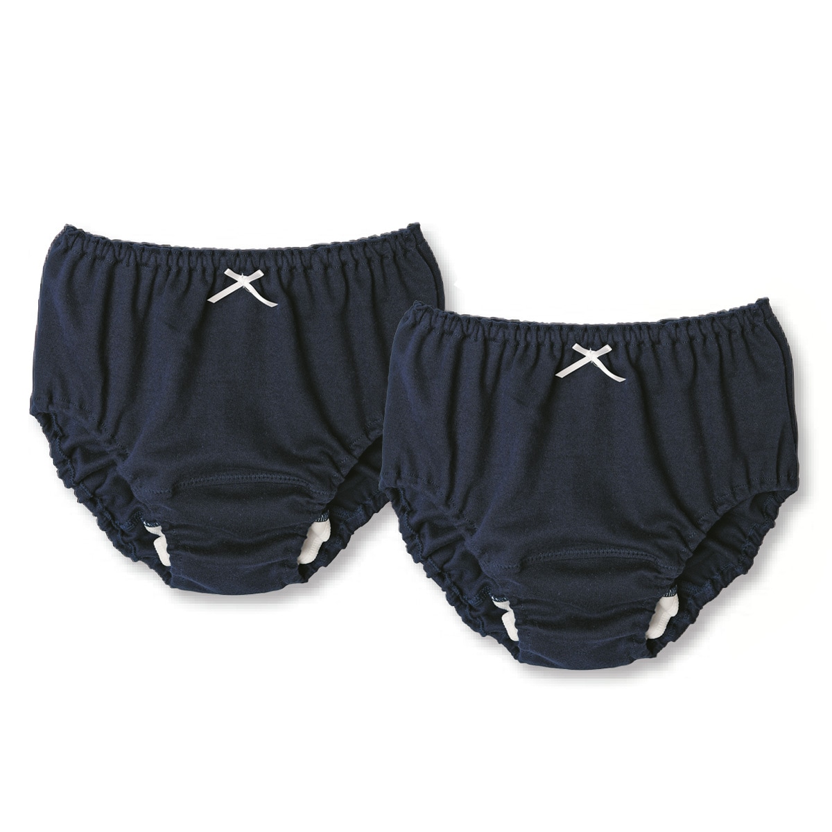 使いやすいブラックとネイビーの同色2枚組セット。肌辺りにもこだわった安心の日本製です。羽付きナプキン対応で安心感バツグン◎綿100%の生地だからデリケートな日も肌に優しく過ごせます!