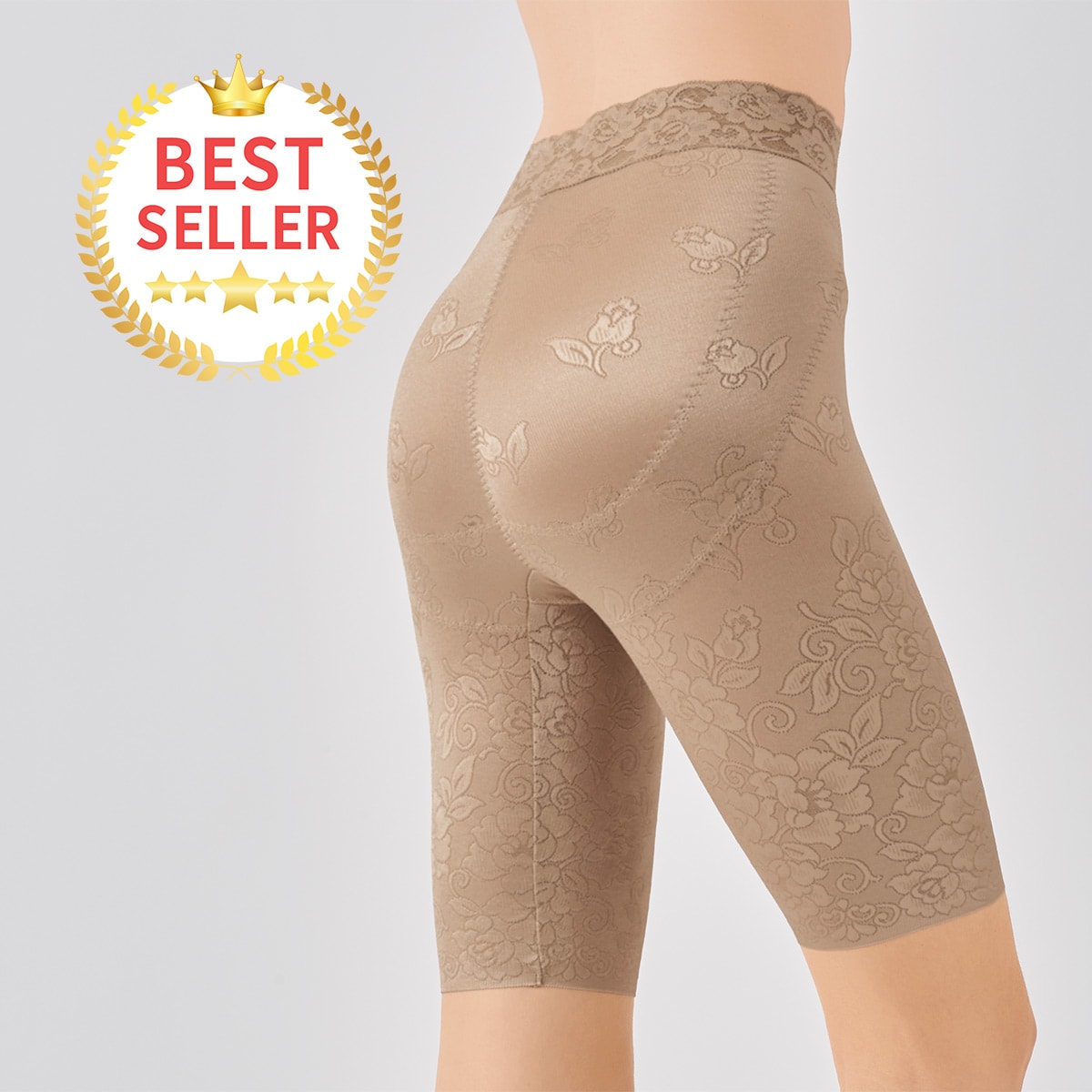 ミディアムタイプの程よい引き締めでラクに美尻が叶う!と愛され続けるロングヒットガードル。薄手のパンツのインにも一枚ばきできて、ラインもひびきません。
