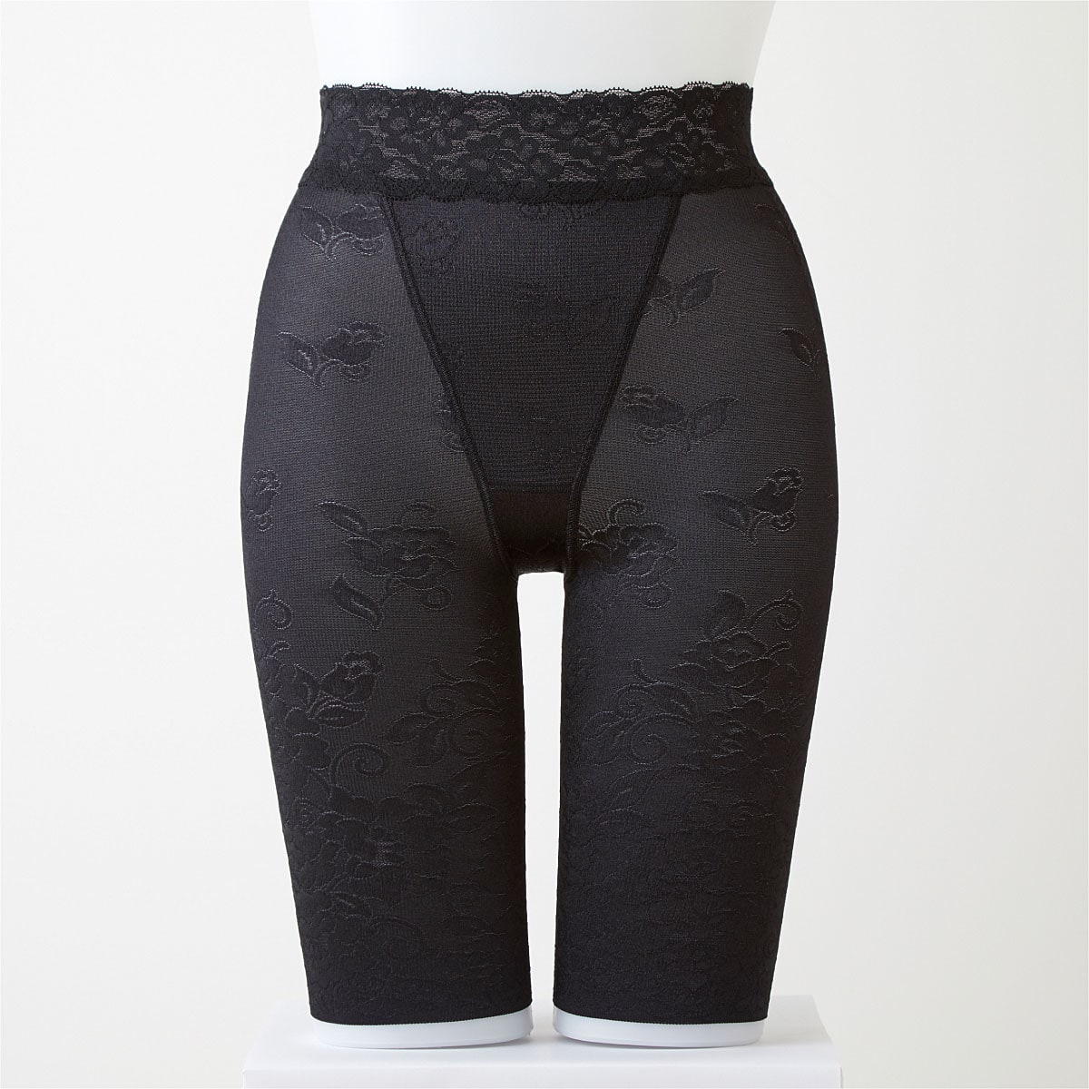 太ももをしっかりカバーして段差も作りにくい股下約21cm丈。マチ裏は綿素材で1枚ばきもできます。 ブラック着用例