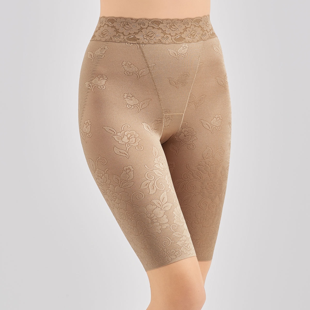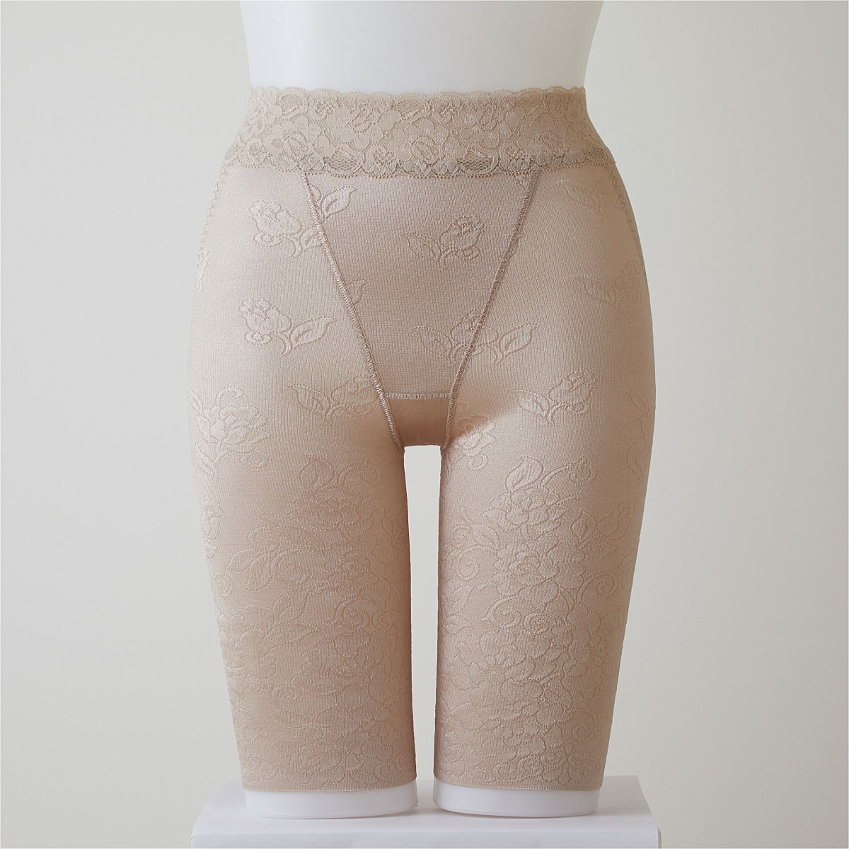 ウエストレース仕様でラク。太ももをしっかりカバーする約21cm丈でパンツにもピッタリ。「美シルエット ロングガードル」 ローズベージュ 股下約21cm着用例