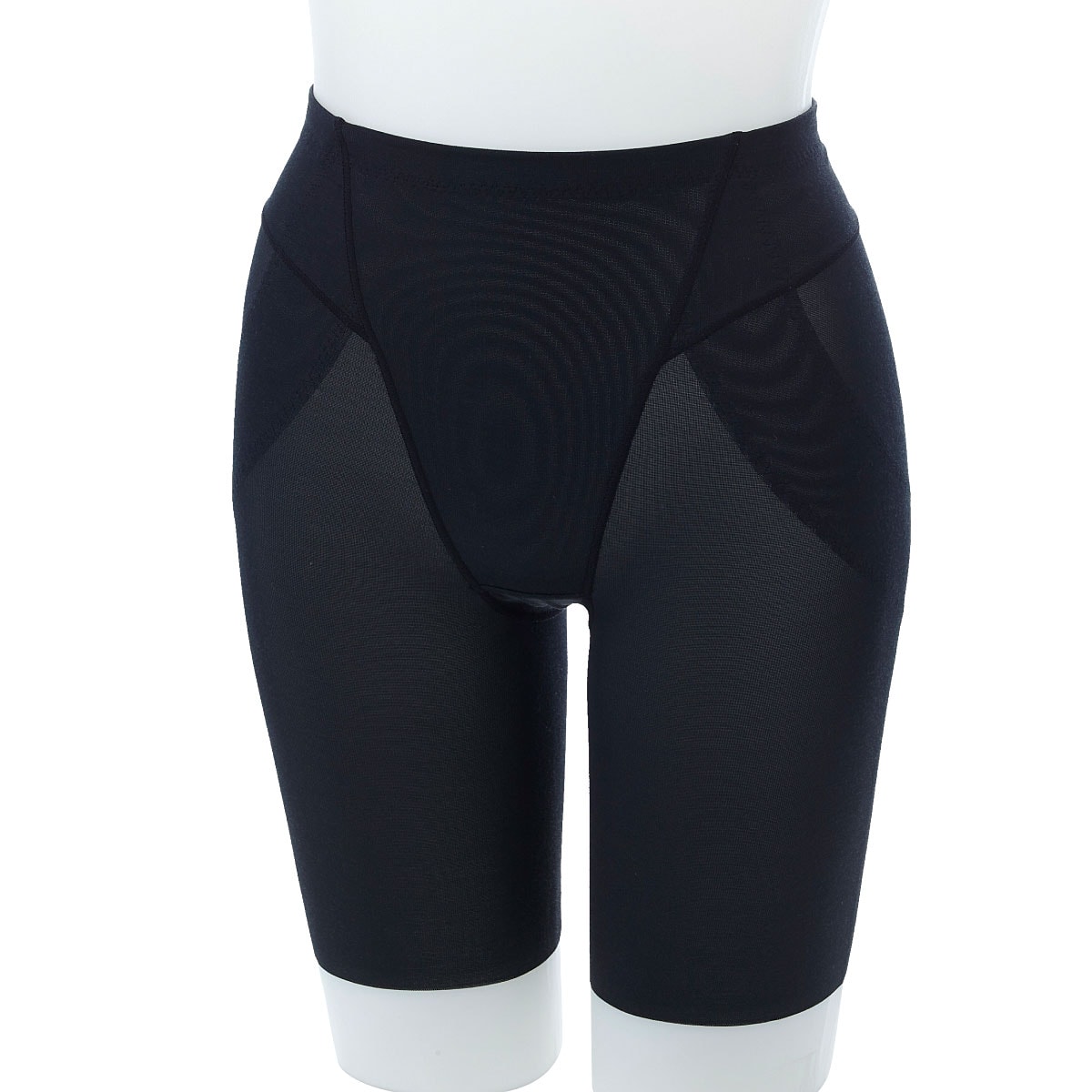 綿混素材で1枚ばきしても気持ちいい♪気になる部分をしっかり押さえ、ヒップライン&シルエットをすっきり!アウターにひびきにくい、足口ヘム仕上げのシンプルガードル(股下約16cm)。