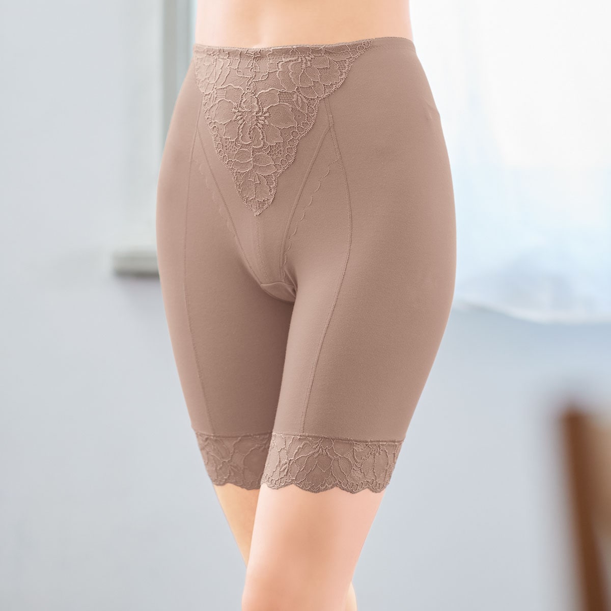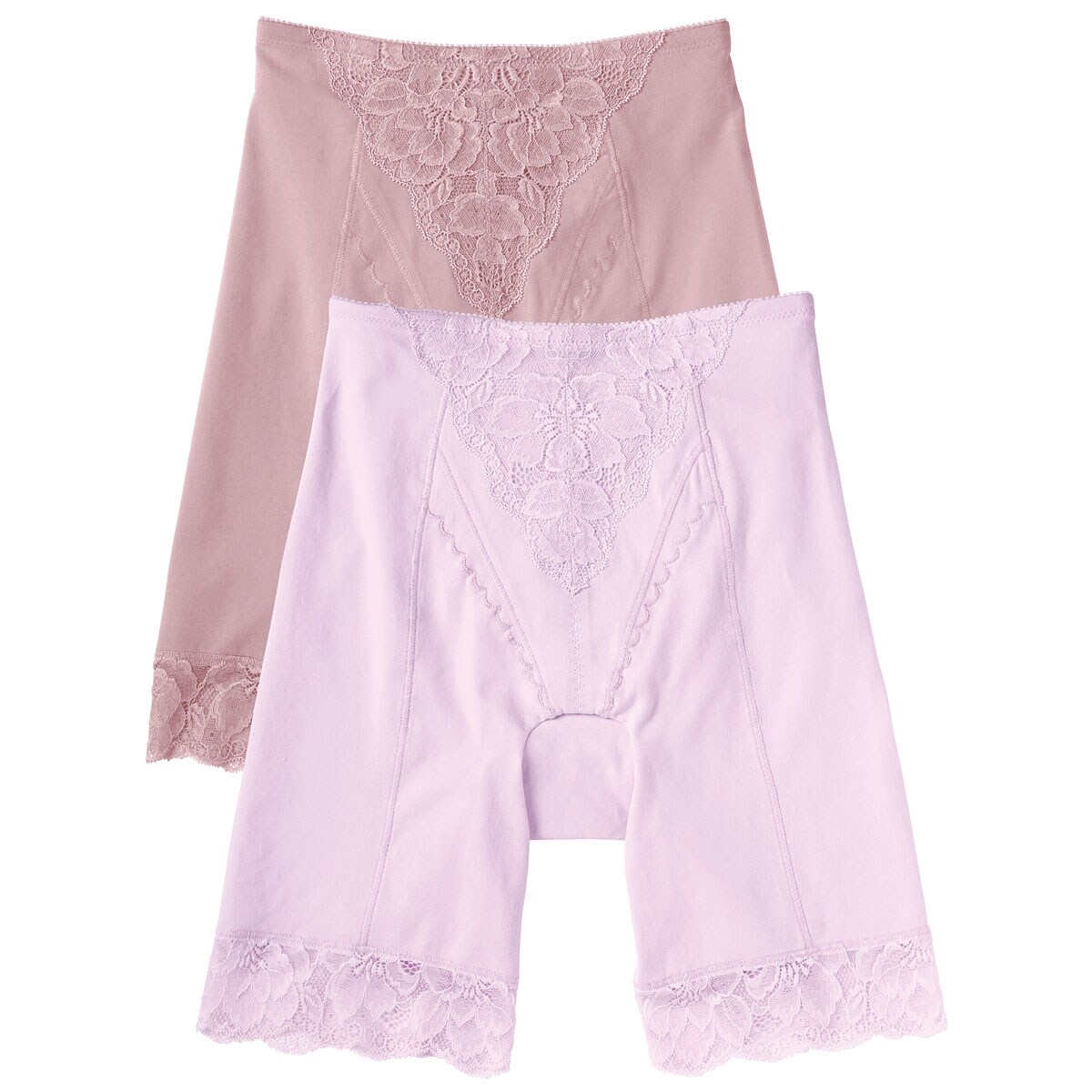 肌ざわりがよく、締め付け感の少ないソフトタイプの綿混ロングガードル(色違い2枚組)。ソフトな裏当てでおなかをそっと押さえ、締め付けなしでやさしく整えます。締め付けない足口レース仕様でくい込みにくく快適。マチ裏も綿混素材で1枚ばきOKです。肌側は微起毛仕上げでふんわりやわらか。ストレッチ性もあり、よく伸びてフィットし、動きやすさにも優れています。(旧品番:GL-147のリニューアル商品。はき心地はそのまま、さらに風合いよくやさしく生まれ変わりました!)