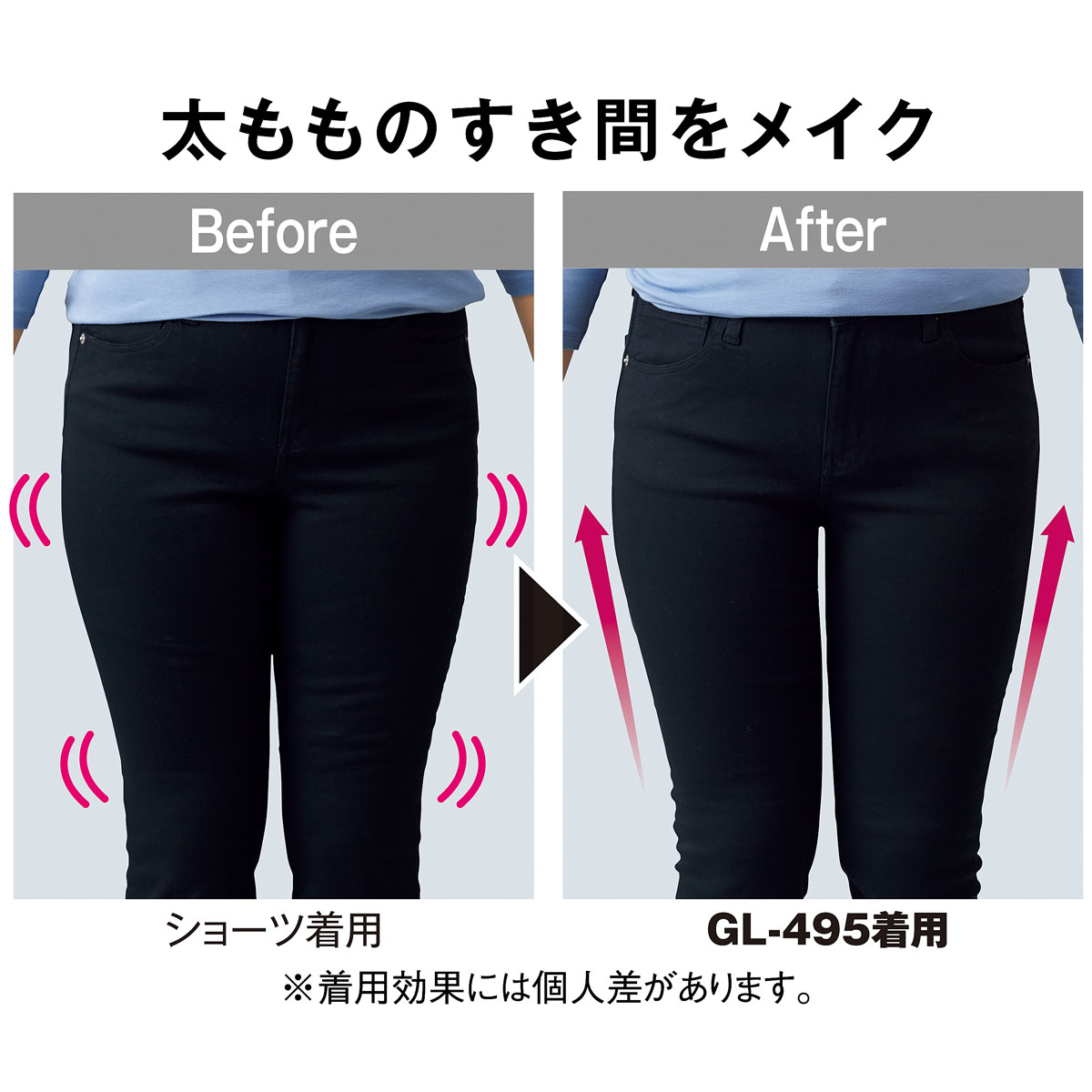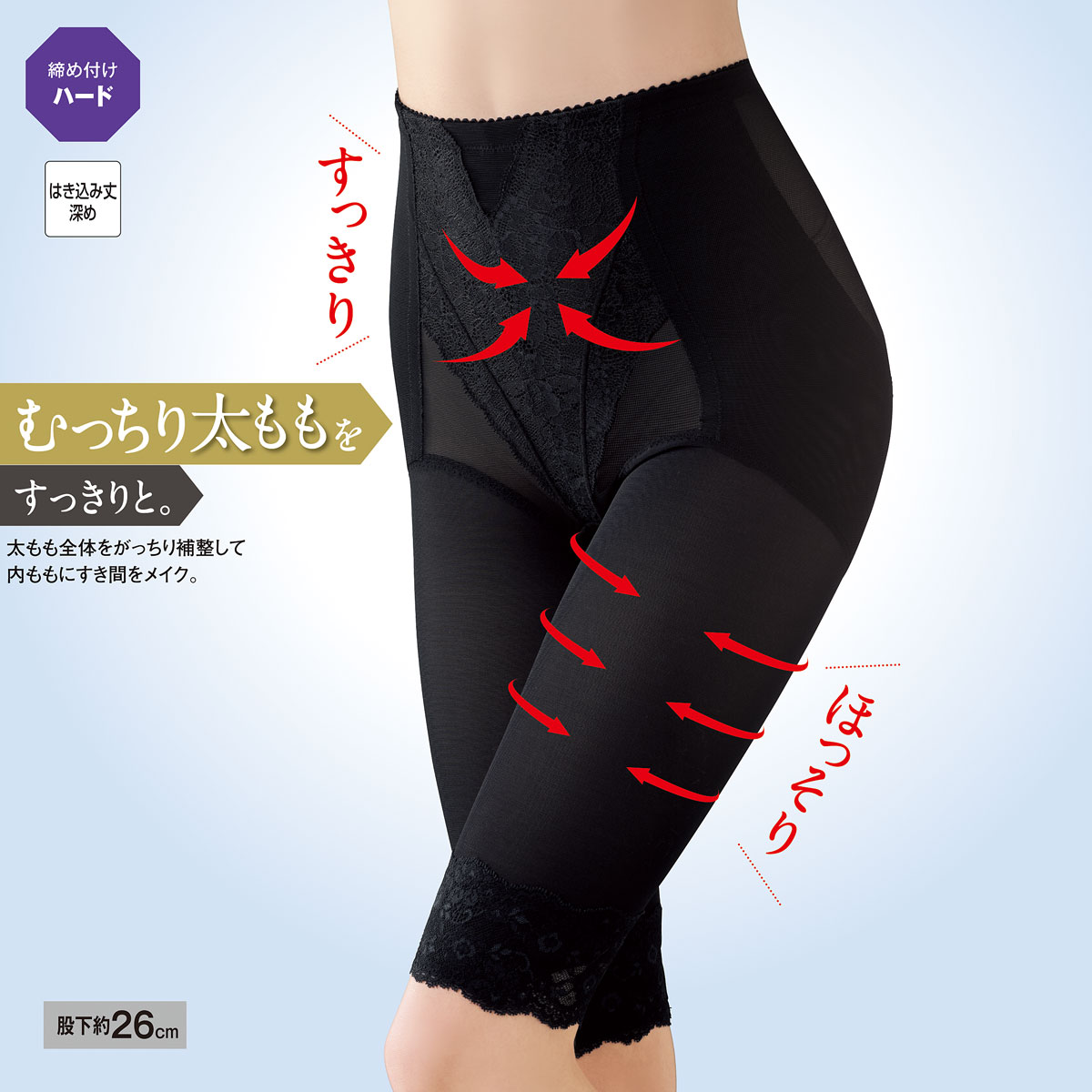 太もも全体をしっかり引き締めてすき間をメイク。お腹もしっかりシェイプします。 ブラック着用例 股下約26cm