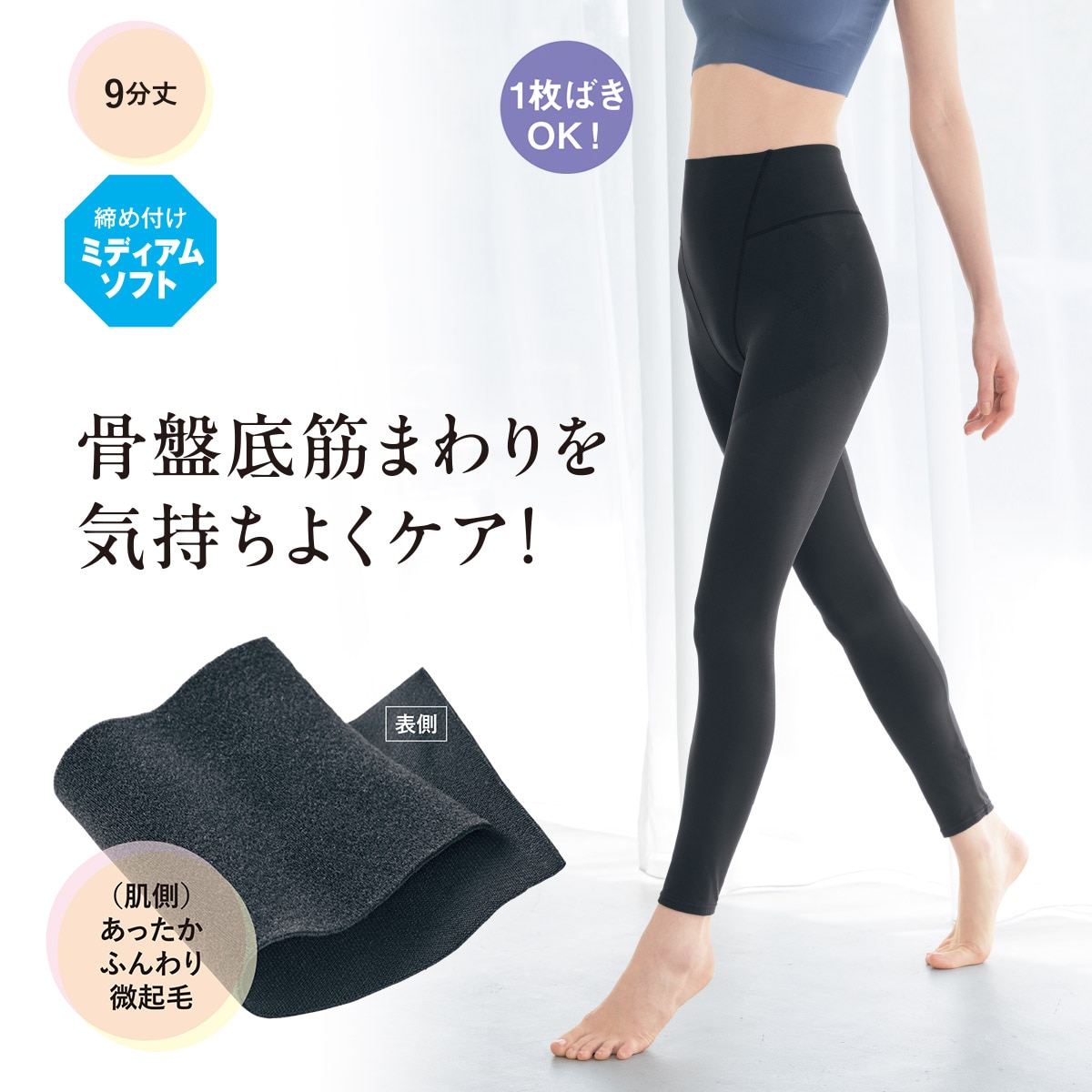 裏起毛骨盤底筋まわりサポートレギンス9分丈(ミディアムソフトタイプ)