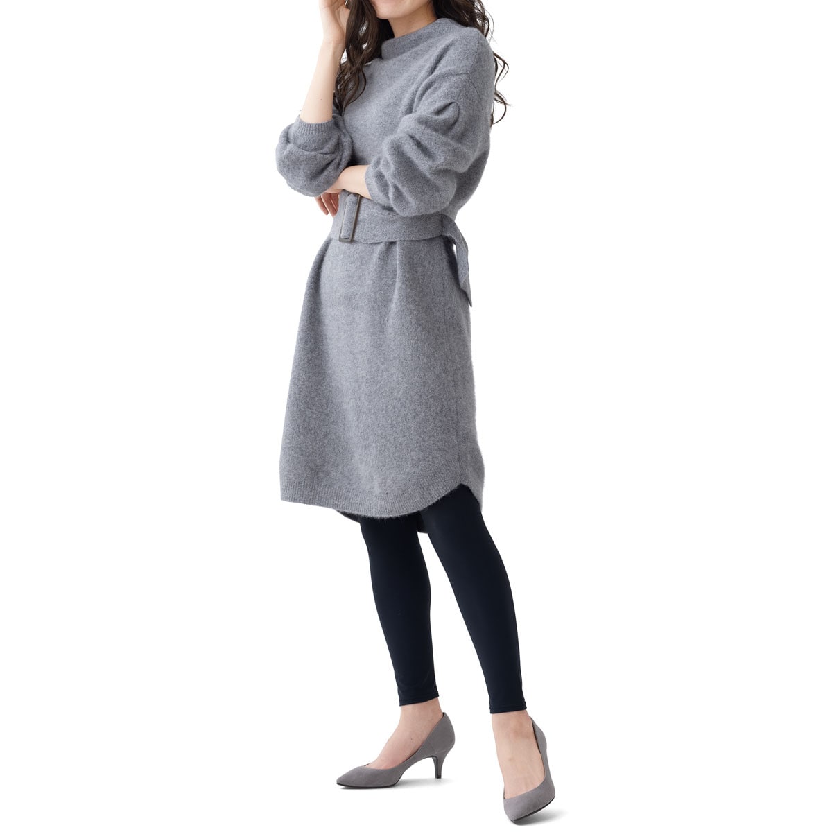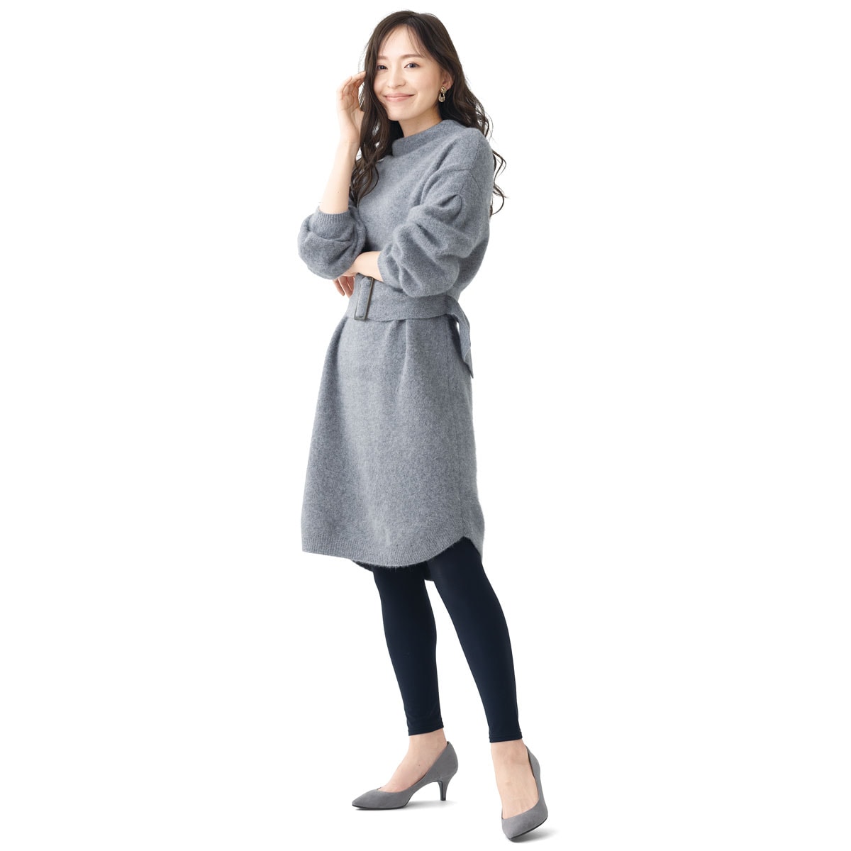 微起毛素材だから、寒い冬の日のワンピコーデにも活躍します。ブラック着用例