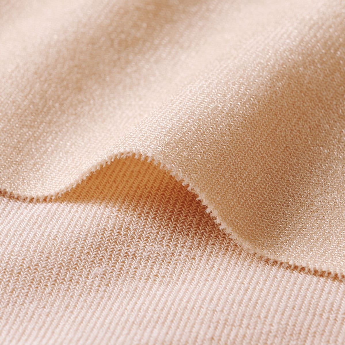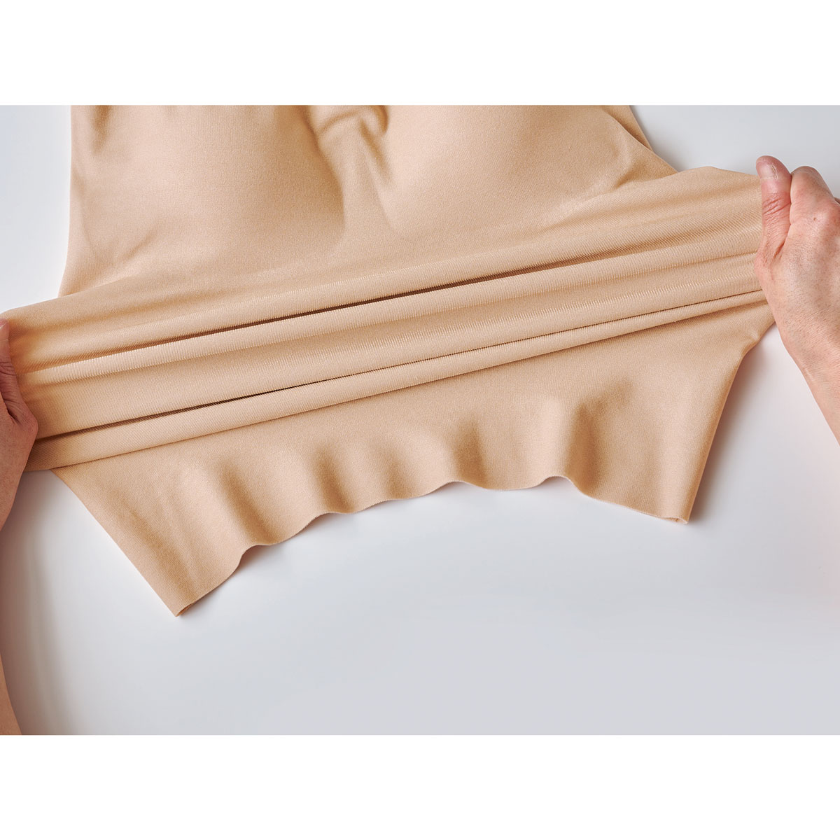お肌にやさしいカットオフ素材 生地端に縫い目がないカットオフ(切りっぱなし)仕様で、肌あたりがよく下着のラインがひびきにくい。