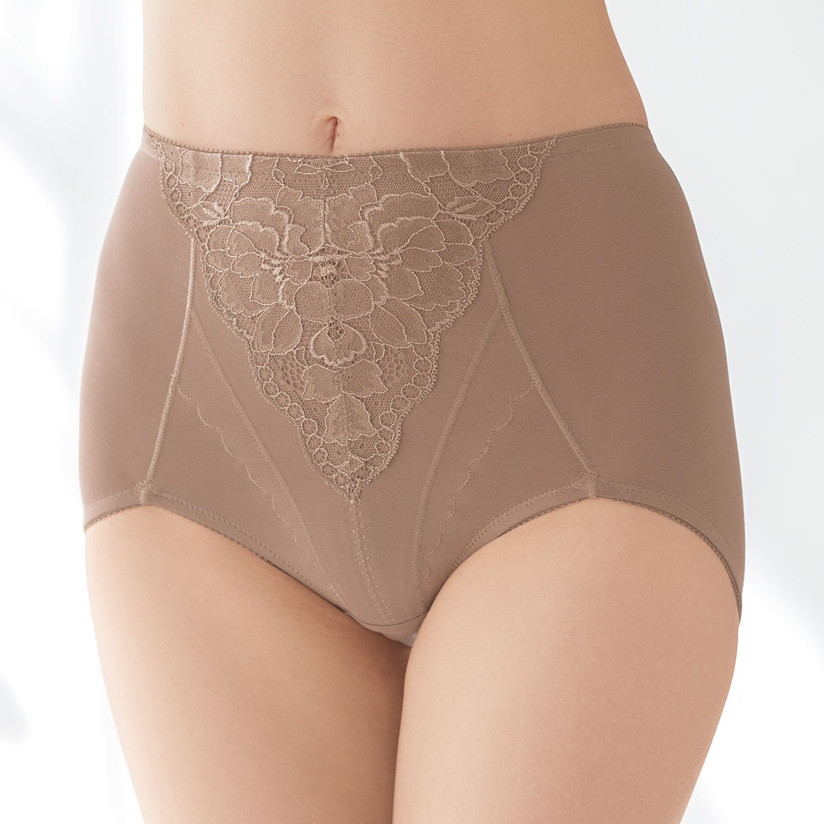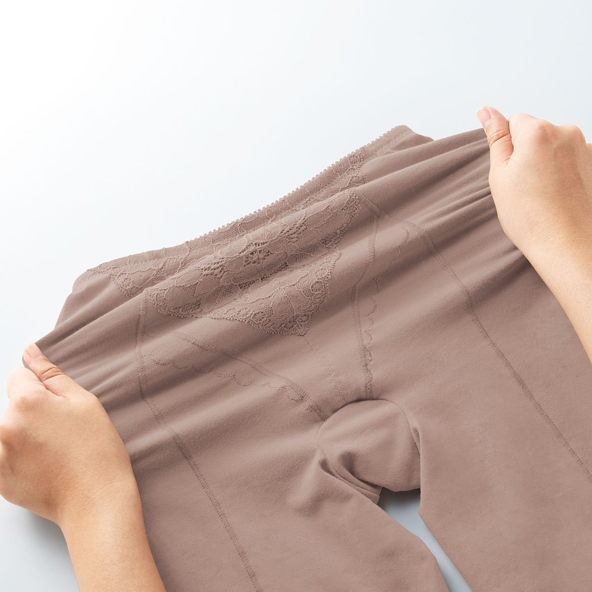 気になるお腹部分はパワーネットを使用せず、身生地を二重仕立てにすることでソフトに補整します。