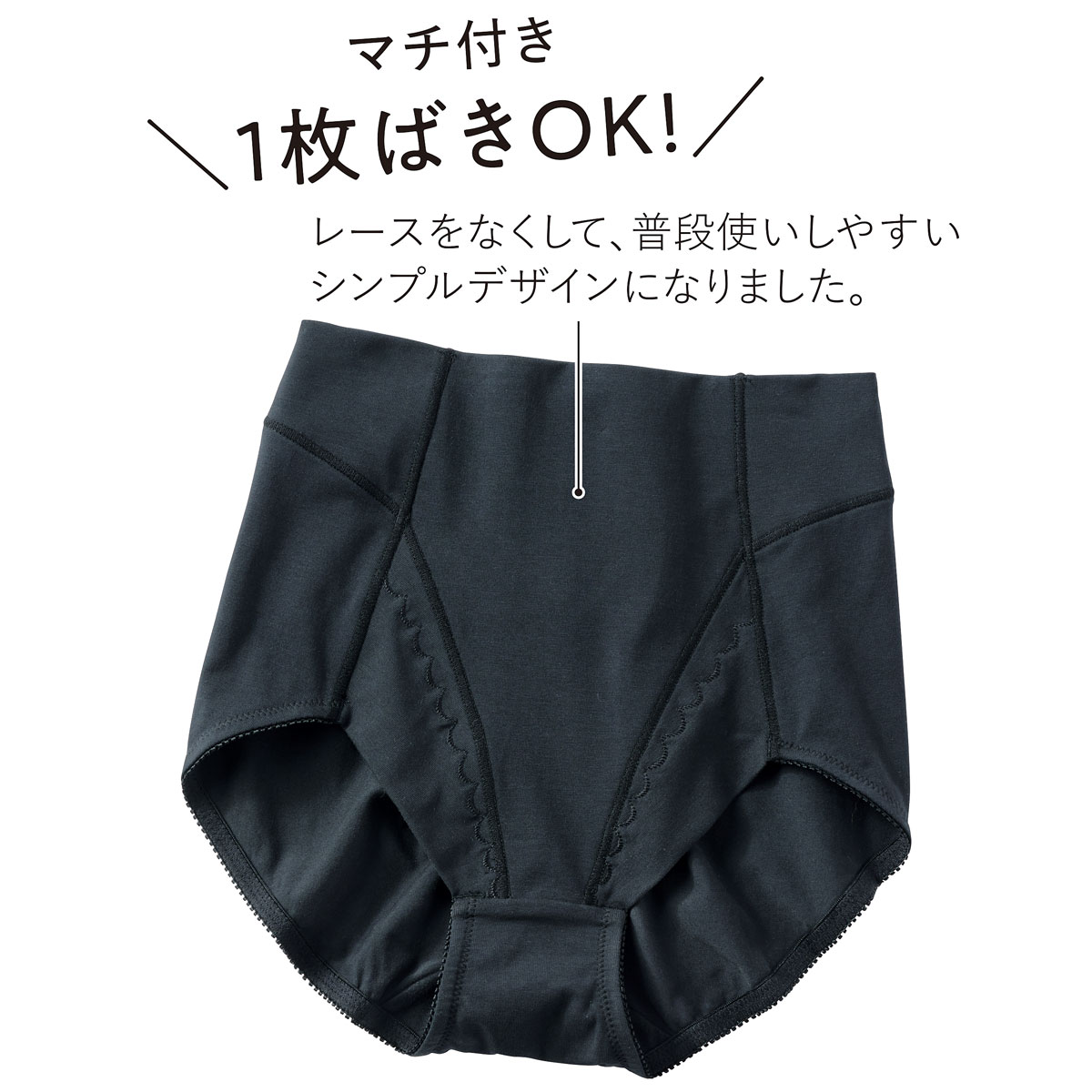 マチ付き 1枚ばきOK! レースをなくして、普段使いしやすいシンプルデザインになりました。