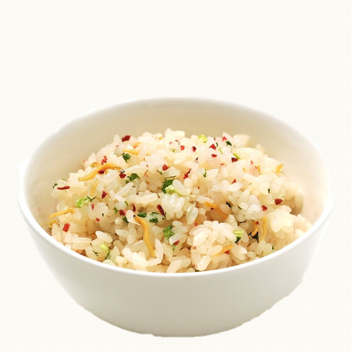 梅じゃこご飯かつおだしがベース、さっぱりとした梅がアクセント。