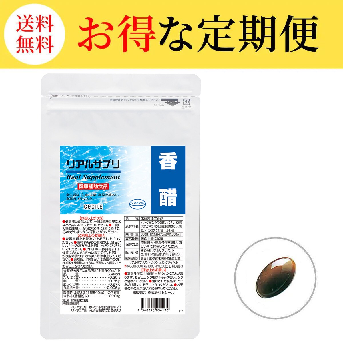 ■内容量LL:470mg(内容量300mg)×360球(約180日分)●1日の目安/2球●主要成分(2球当たり)/米酢末(香醋粉末)220mg※原材料の一部に卵・ゼラチンが含まれます。原材料/オリーブ油(スペイン製造)、ゼラチン、米酢末(米酢、デキストリン)、卵黄油(卵を含む)/グリセリン、ミツロウ、クエン酸、アルギン酸※商品の特性上、返品・交換はお受けできません。【リアルサプリ定期便の4大特典】特典1/ お得な割引価格でお届けします!特典2/ 毎回送料無料でお届けします!特典3/ 12回目のお届けごとにセシールスマイルポイント1000ポイントプレゼント!(※1)特典4/ 2回目以降はお好きな周期でお届け!毎月1回または、ご希望の周期を14~180日の間でお選びいただけます!※周期の変更・停止をご希望の場合は、次回お届けの14日前までにお申し出ください。お客様からの停止のご連絡が無い場合は、お届けは自動継続になります。※次回のお届け予定日は、商品お届け後にマイページの「購入商品一覧・口コミ投稿」にてご確認いただけます。お客様からの停止のご連絡が無い場合は、お届けは自動継続になります。(※1)ご注文のコースに関わらず、定期便のご注文数量1セットにつき、1000ポイントのプレゼントとなります。12回目の商品お届けの後に、1000ポイントをプレゼントさせていただきます。お休みされた場合の回数はカウントされません。
