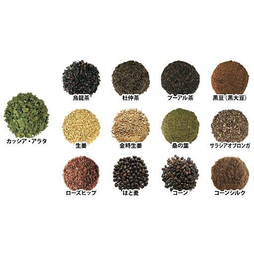 【毎日飲むものだから「品質」にこだわっています】1)100%自然素材を使用2)食品添加物無添加3)286項目にものぼる農薬残留検査を実施4)原材料の受け入れから製造、品質管理、出荷の工程まで一貫して国内工場で管理■内容量/ 3g×30包■原材料名/キャンドルブッシュ(インドネシア産)、半醗酵茶(烏龍茶)、黒豆(大豆)、後醗酵茶(プーアル茶)、杜仲茶、生姜(金時生姜)、生姜、桑の葉、サラシアオブロンガ、はと麦、ローズヒップ、コーンシルク、コーン※原材料の一部に大豆が含まれます。●お召し上がり方【カップ・ティーポットなどの場合】ティーバッグ1包をティーカップ、またはティーポットに入れて熱湯を約300mL注ぎ、1分~5分程蒸らしてからお召し上がりください。【煮出す場合】1リットルあたり2包を目安に1~3分程煮出してお召し上がりください。※一度に多量を摂取すると、体質によりお腹がゆるくなる場合がありますので、一日一杯を目安に、体調に合わせてお召し上がりください。※商品の特性上、食品・健康食品(サプリメント等)の返品・交換はお受けできません。※商品リニューアルのため、パッケージが変更になる場合がございますので、あらかじめご了承ください。