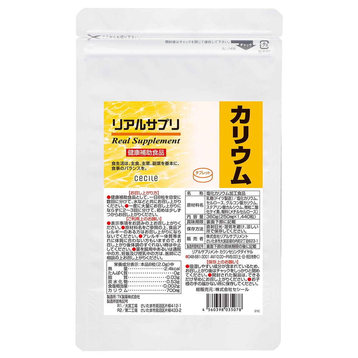 ■内容量M:250mg×240粒(約30日分)LL:250mg×1440粒(約180日分)●1日の目安/8粒●主要成分(8粒当たり)/カリウム 700mg※原材料の一部に乳が含まれます。●原材料/乳糖(ドイツ製造/塩化カリウム、セルロース、グリセリン脂肪酸エステル、グルコン酸カリウム、糊料(メチルセルロース)リアルサプリ・リアルエクセレントシリーズはすべて国内工場で製造しております。※商品の特性上、返品・交換はお受けできません。