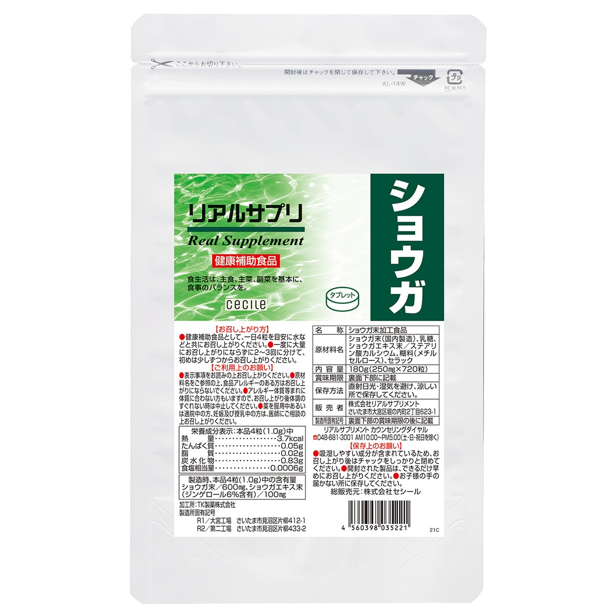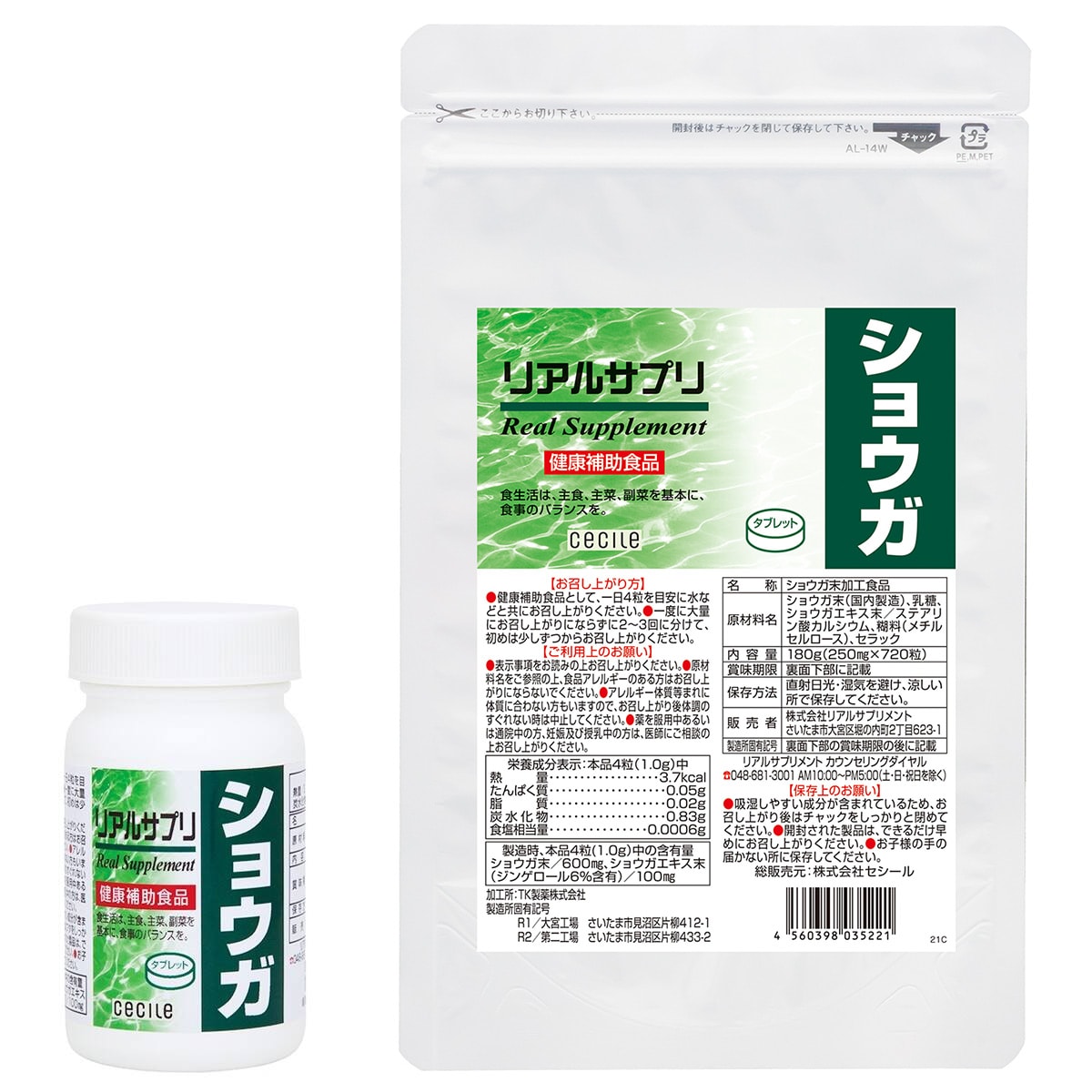 ■内容量M:250mg×120粒(約30日分)LL:250mg×720粒(約180日分)●1日の目安/4粒●主要成分(4粒当たり)/ショウガ末 600mg、ショウガエキス末(ジンゲロール6%含有) 100mg※原材料の一部に乳が含まれます。●原材料/ショウガ末(国内製造)、乳糖、ショウガエキス末/ステアリン酸カルシウム、糊料(メチルセルロース)、セラックリアルサプリ・リアルエクセレントシリーズはすべて国内工場で製造しております。※商品の特性上、返品・交換はお受けできません。