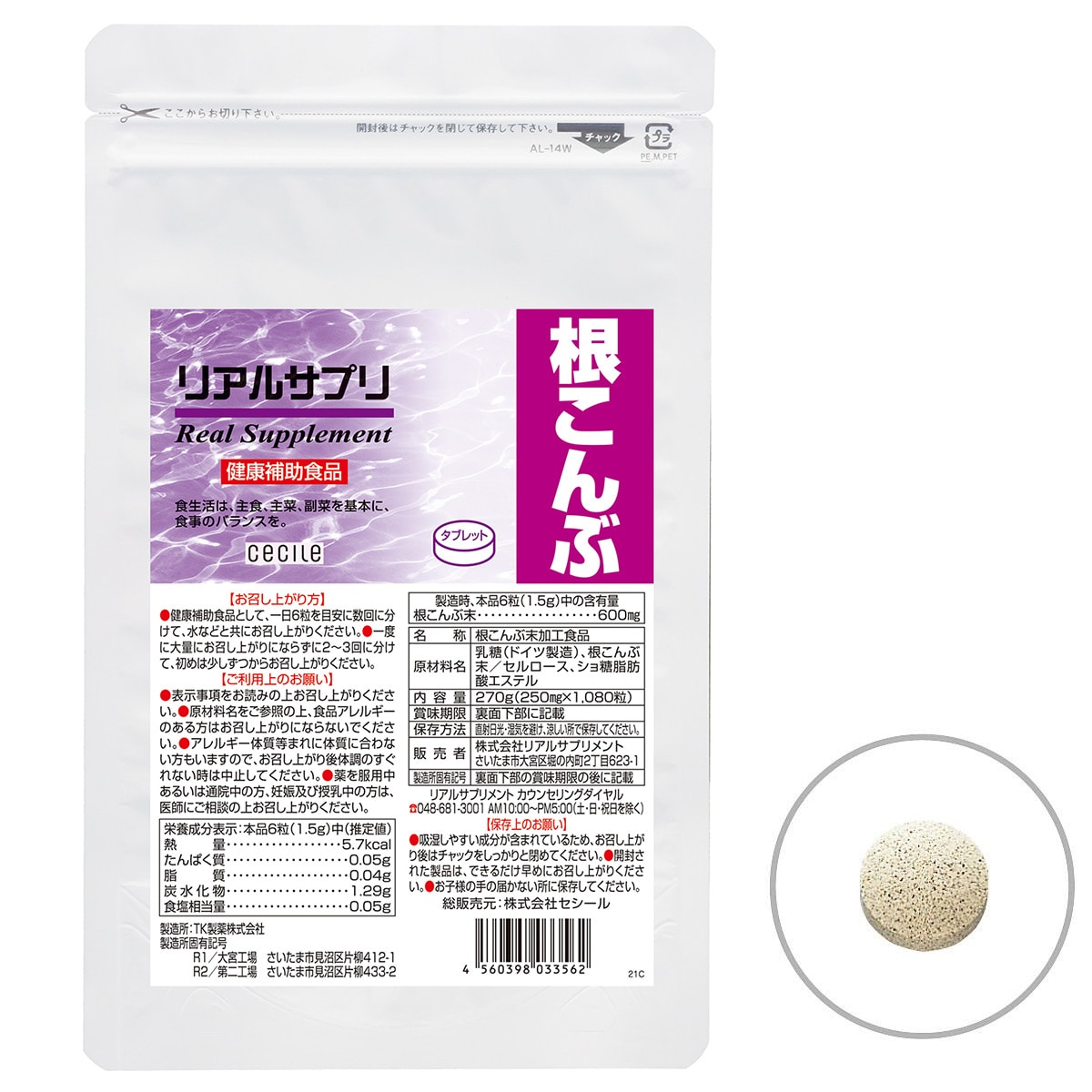 ■内容量M:250mg×180粒(約30日分)LL:250mg×1080粒(約180日分)●1日の目安/6粒●主要成分(6粒当たり)/根こんぶ末 600mg※原材料の一部に乳が含まれます。●原材料/乳糖(ドイツ製造)、根こんぶ末/セルロース、ショ糖脂肪酸エステルリアルサプリ・リアルエクセレントシリーズはすべて国内工場で製造しております。※商品の特性上、返品・交換はお受けできません。
