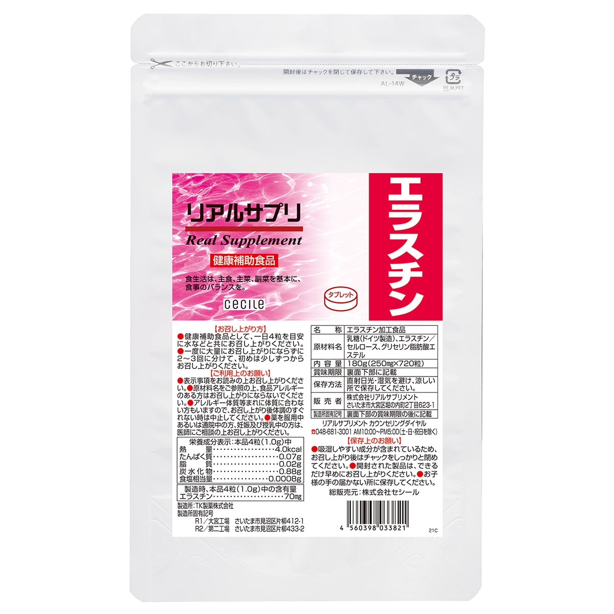■内容量M:250mg×120粒(約30日分)LL:250mg×720粒(約180日分)●1日の目安/4粒●主要成分(4粒当たり)/エラスチン 70mg※原材料の一部に乳が含まれます。●原材料/乳糖(ドイツ製造)、エラスチン/セルロース、グリセリン脂肪酸エステルリアルサプリ・リアルエクセレントシリーズはすべて国内工場で製造しております。※商品の特性上、返品・交換はお受けできません。
