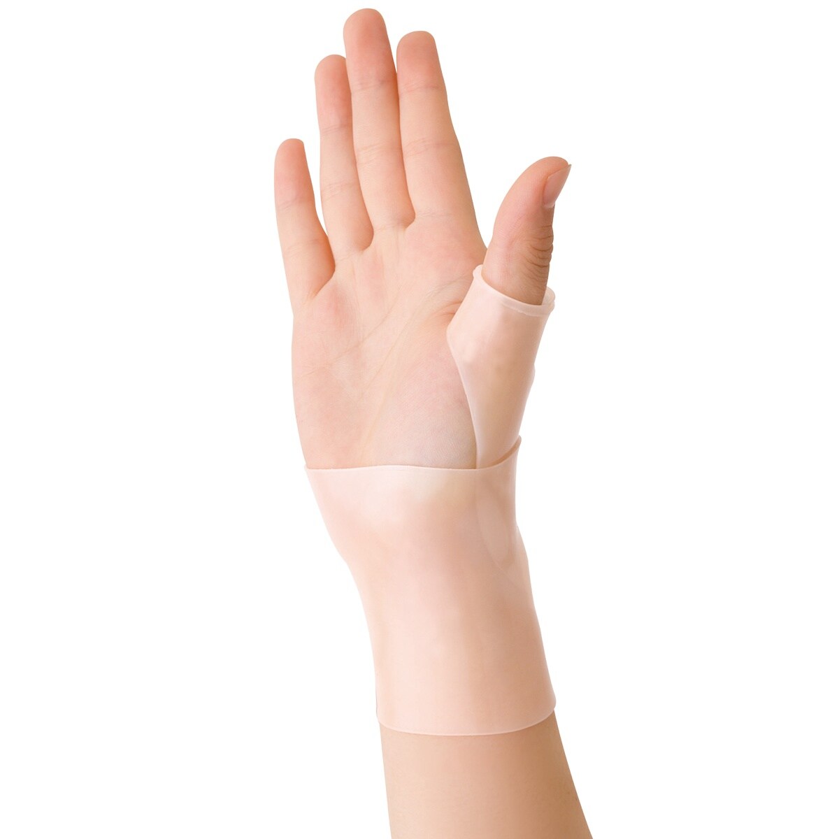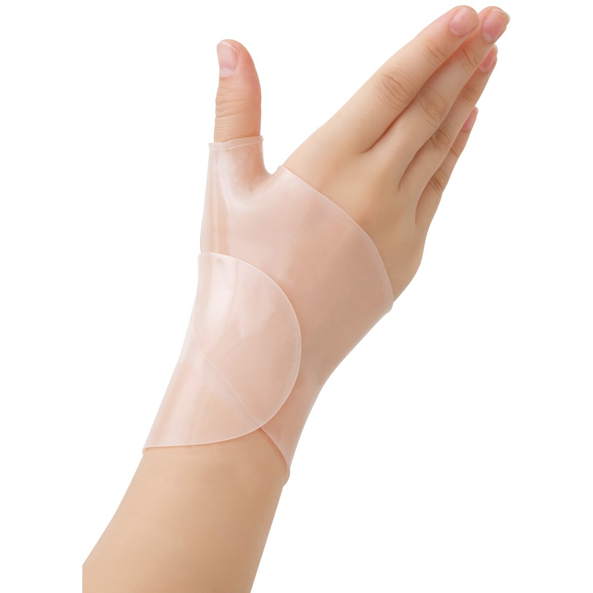 ゲルの吸着力でピタッ!(※)巻きつけタイプで、装着簡単♪サイズに合わせて固定力調節自在。手仕事、家事の間もしっかりサポート。パソコン操作に、スポーツにも!装着したまま水仕事もできる!伸縮性に優れ、手の形にピッタリ!※ 着用時の物理的なサポートによる。