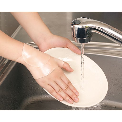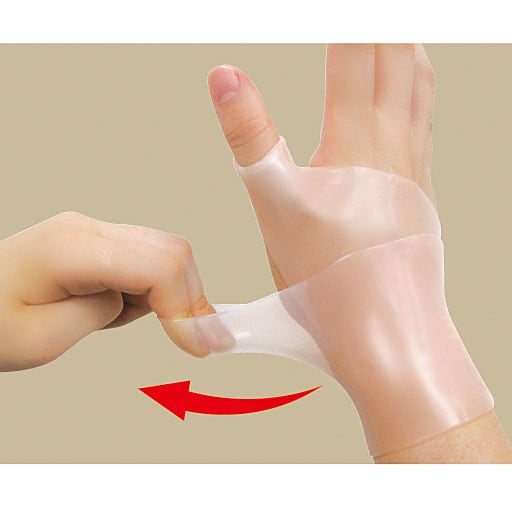 ゲルの吸着力でピタッ!(※)巻きつけタイプで、装着簡単♪サイズに合わせて固定力調節自在。手仕事、家事の間もしっかりサポート。パソコン操作に、スポーツにも!装着したまま水仕事もできる!伸縮性に優れ、手の形にピッタリ!※ 着用時の物理的なサポートによる。